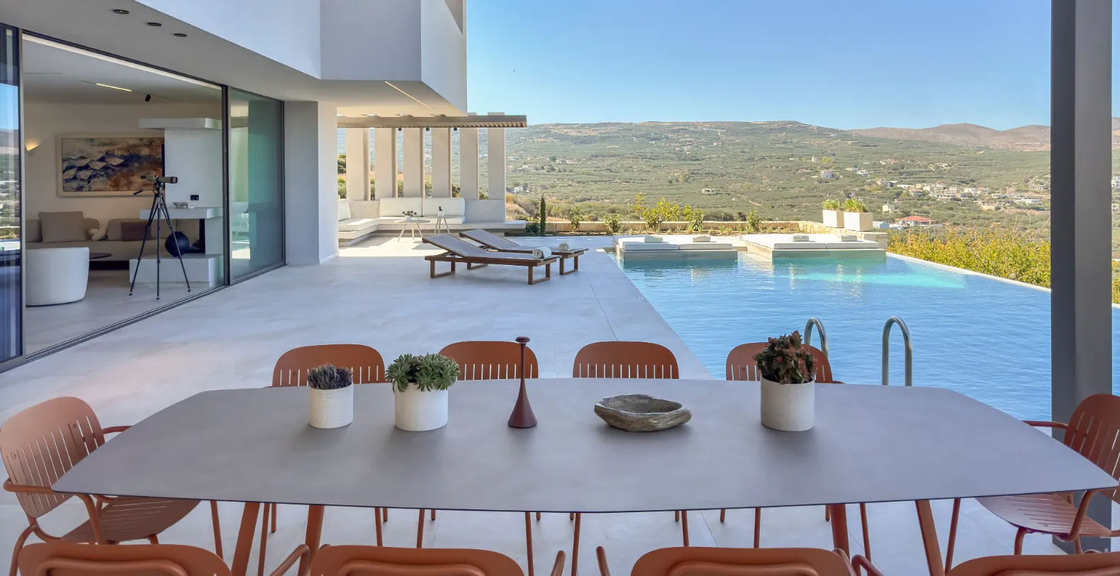 At the highest point of a scenic hillside in western Crete, Villa Majestic is a luxury vacation rental offering refined design and exceptional privacy. This property is a premier vacation rental designed to deliver an unforgettable Mediterranean escape. Surrounded by olive groves, native gardens, and sweeping coastal views, the villa combines elegant architecture, generous living spaces, and serene outdoor areas. The villa’s location makes it easy to explore the natural beauty and cultural heritage of western Crete. From charming coastal villages and traditional tavernas to some of the island’s most famous beaches, the surrounding region offers endless opportunities for discovery.