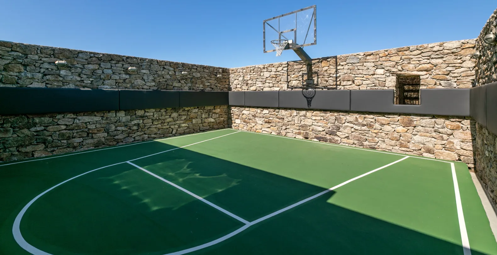 Created with inspiration and an unparalleled aesthetic as a much loved home it is now ready to welcome, thrill and delight its guests. The aesthetically landscaped grounds include a sweeping driveway and dramatic entrance rotunda, a secluded heliport, a cozy firepit, secondary entrance and access road. On this most hedonistic of islands, the estate provides you with your own private place to party or just enjoy as a bucolic retreat. Warmed by the sun, ensconced by the powerful rock formations of this unique landscape, surrender to rest, relaxation and enjoyment.Our property’s focal point is the Clubhouse featuring a heated pool, Jacuzzi, basketball court and in house gym as well as other facilities. A brief walk away from here one can find serenity in the master suite, fondly known as the Keli. Close by, situated in a separate typical Mykonian building, four more suites are housed offering stunning views and eclectic amenities.