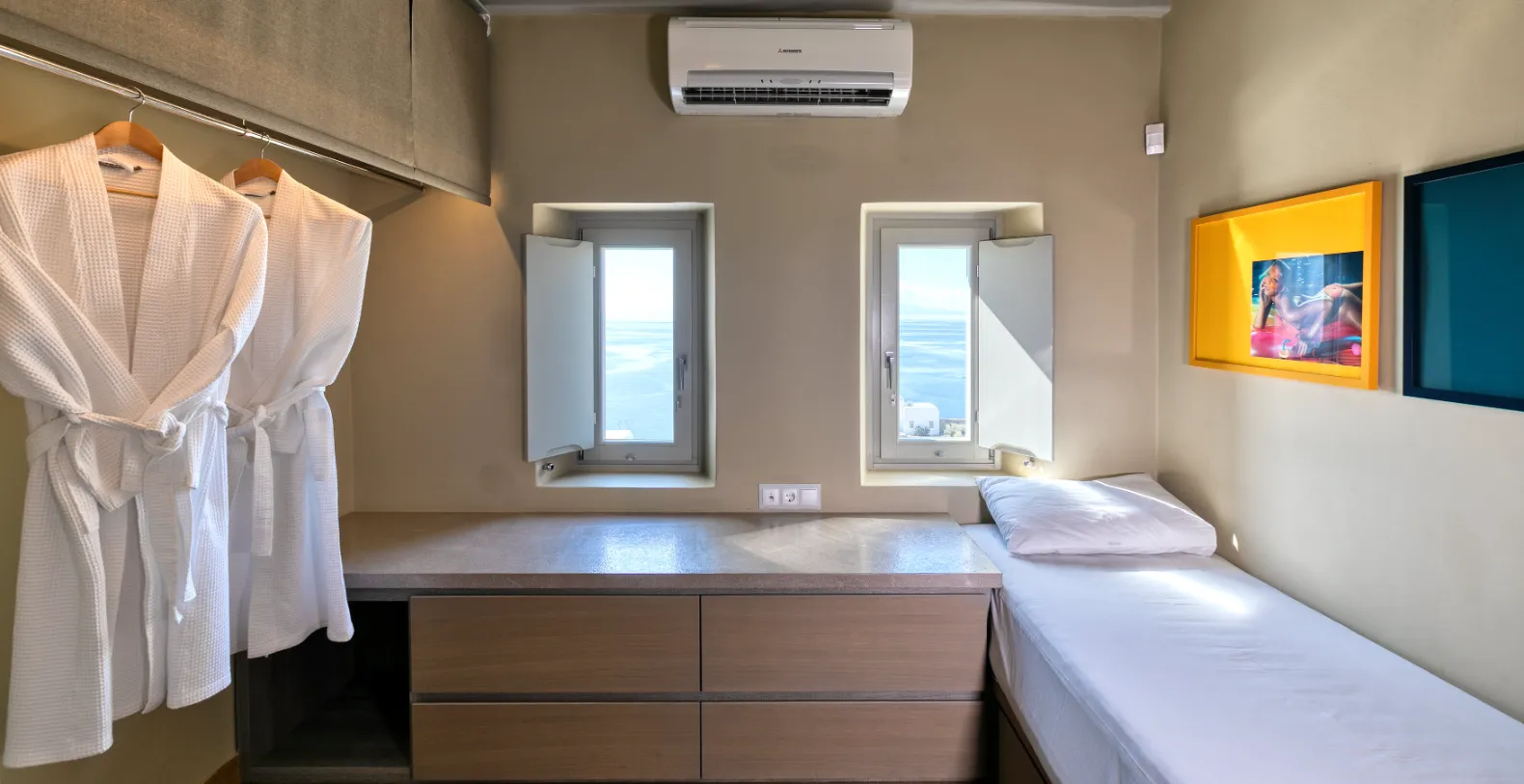 All suites enjoy smart televisions with an entertainment system, wifi access, Nespresso machines, laptop safes, stationary supplies, in room refrigerators, full heating and air conditioning, heated towel rails, Cool soap toiletries and elegant sunbeds where you can enjoy the complimentary suntan products you will find in your bathroom. What makes these properties unique is the proximity and use of the Clubhouse. This building of 200 m2 all on one floor, a two minute walk away, offers a state of the art home cinema, a professional range kitchen in a courtyard, a display kitchen where breakfast is served, 3 guest WCs, a mini football table, a ping pong table and a basketball court. It is possible to host dinners for 20 inside and 18 in the outside dining pergolas.