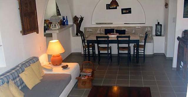Entering the Villa, guests are welcomed with the simplicity of the layout that incorporates the kitchen-dining-living area while the decoration blends nicely with the interior design of the villa. Furthermore the entry level includes an en-suite double bed bedroom, a bedroom with single twin beds and a guest bathroom. Up the stairs and on to the horizon level one finds the master bedroom en-suite with a double bed and two en-suite bedrooms with single twin beds. The rooms on this level have access to a sunny veranda and balcony with the amazing views they offer. This Villa in Mykonos is suitable for a family or a group of friends that want to vacation in a comfortable home environment, who will appreciate its proximity to town and its famous night life.