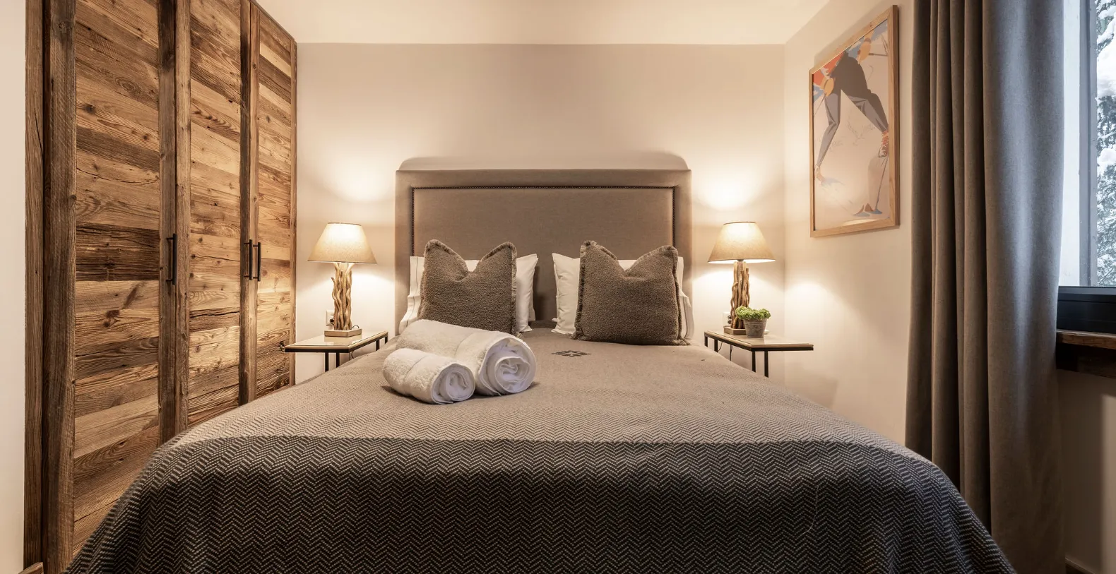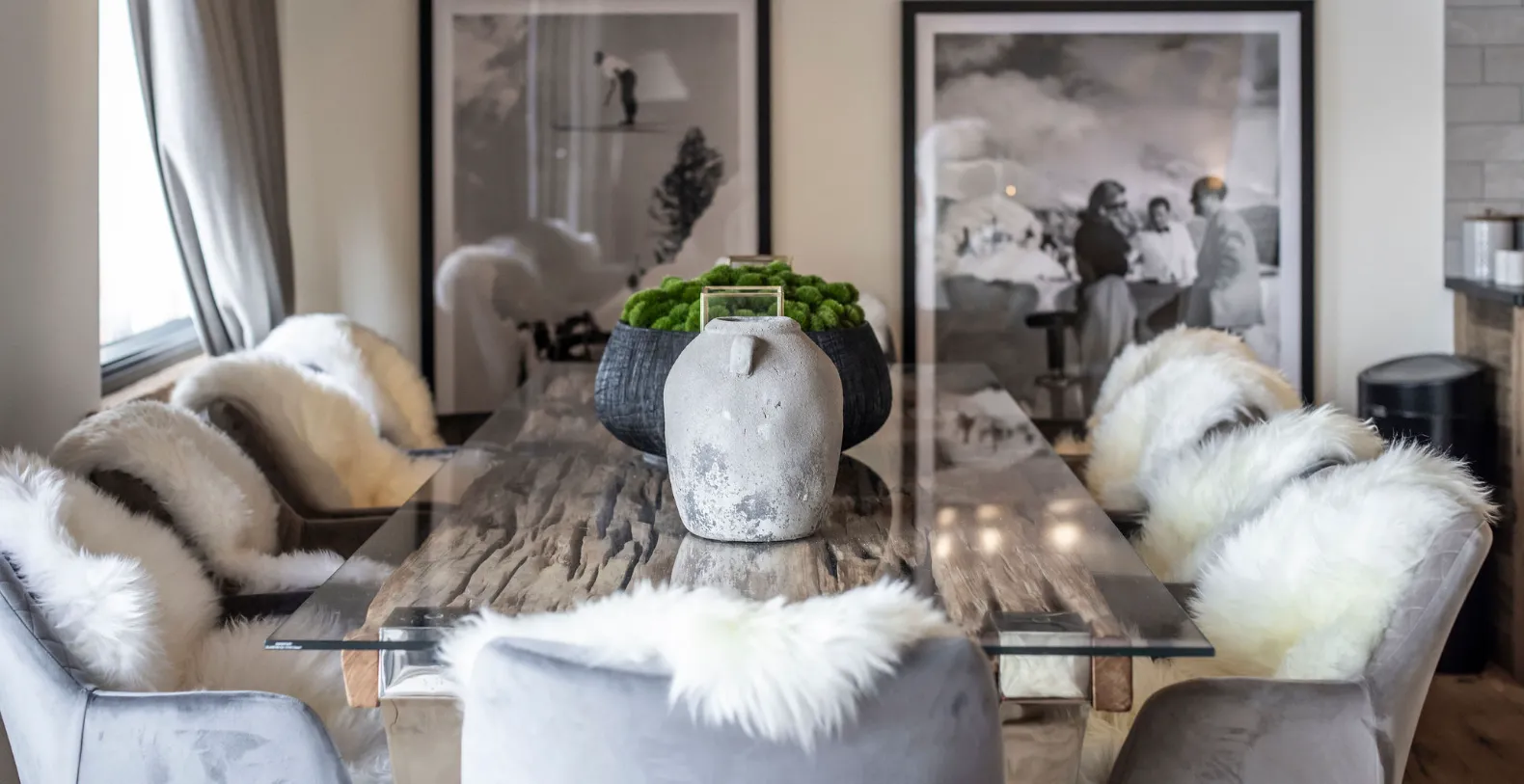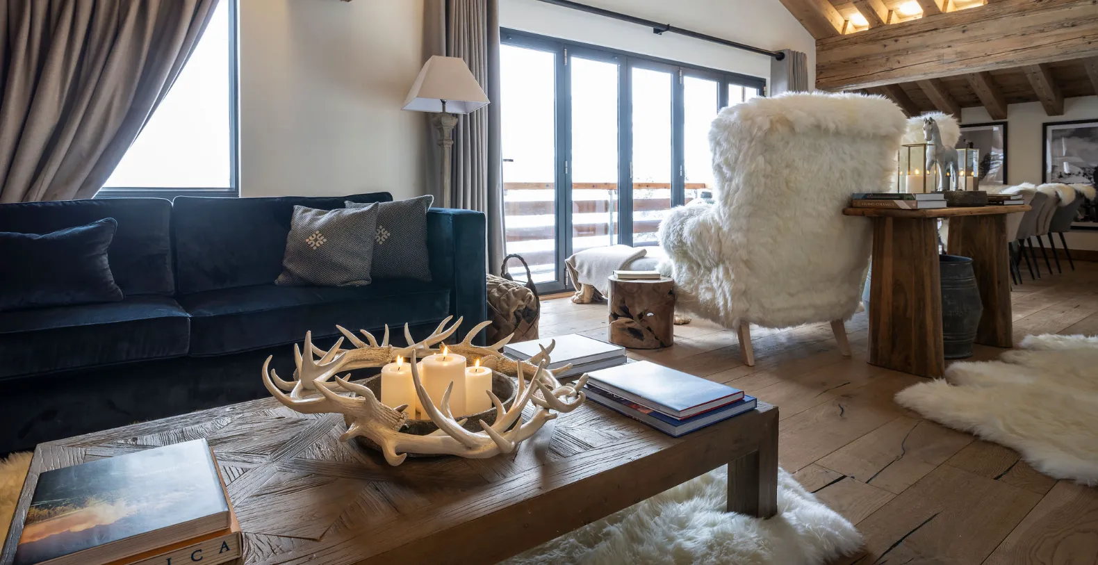 Two private balconies enhance the sense of space and connection to the surrounding alpine landscape. One balcony is accessed from the main living and dining area, while the second is accessed directly from the master bedroom. Both offer uninterrupted views across the mountains and valley below, providing a stunning backdrop for morning coffee, afternoon relaxation, or quiet moments as the light shifts over Verbier’s iconic scenery.