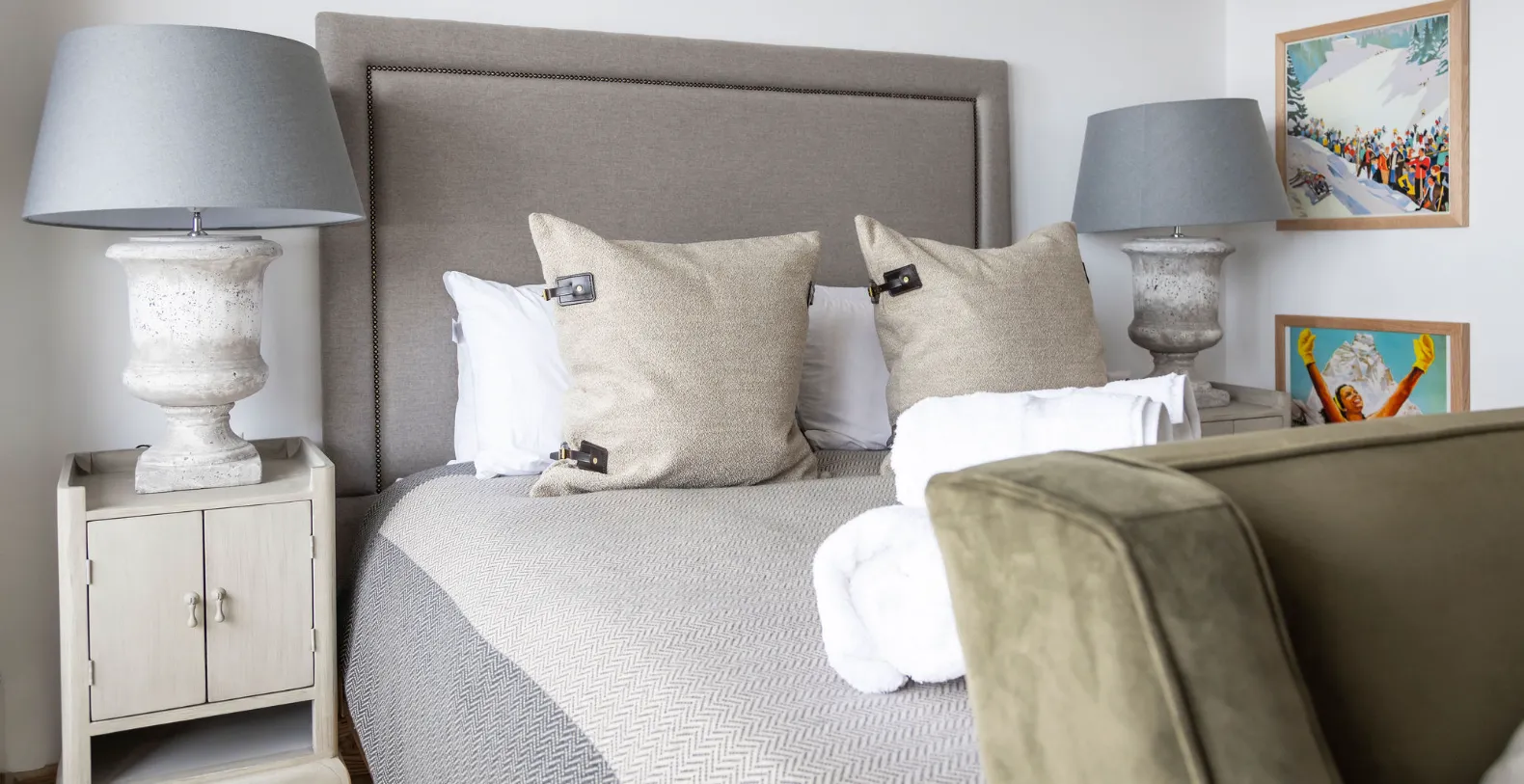 Designed to accommodate up to ten guests, this luxury penthouse apartment features five beautifully appointed bedrooms, four en-suite bathrooms, and an additional guest WC, making it an ideal choice for families or groups of friends seeking refined alpine living in Switzerland. The layout is thoughtfully arranged across two levels, offering both generous communal areas and private retreats. Three of the bedrooms are located on the lower floor, while two additional double bedrooms occupy the upper level, each with elegant en-suite bathrooms featuring stone bathtubs that add a spa-like feel to the sleeping quarters.