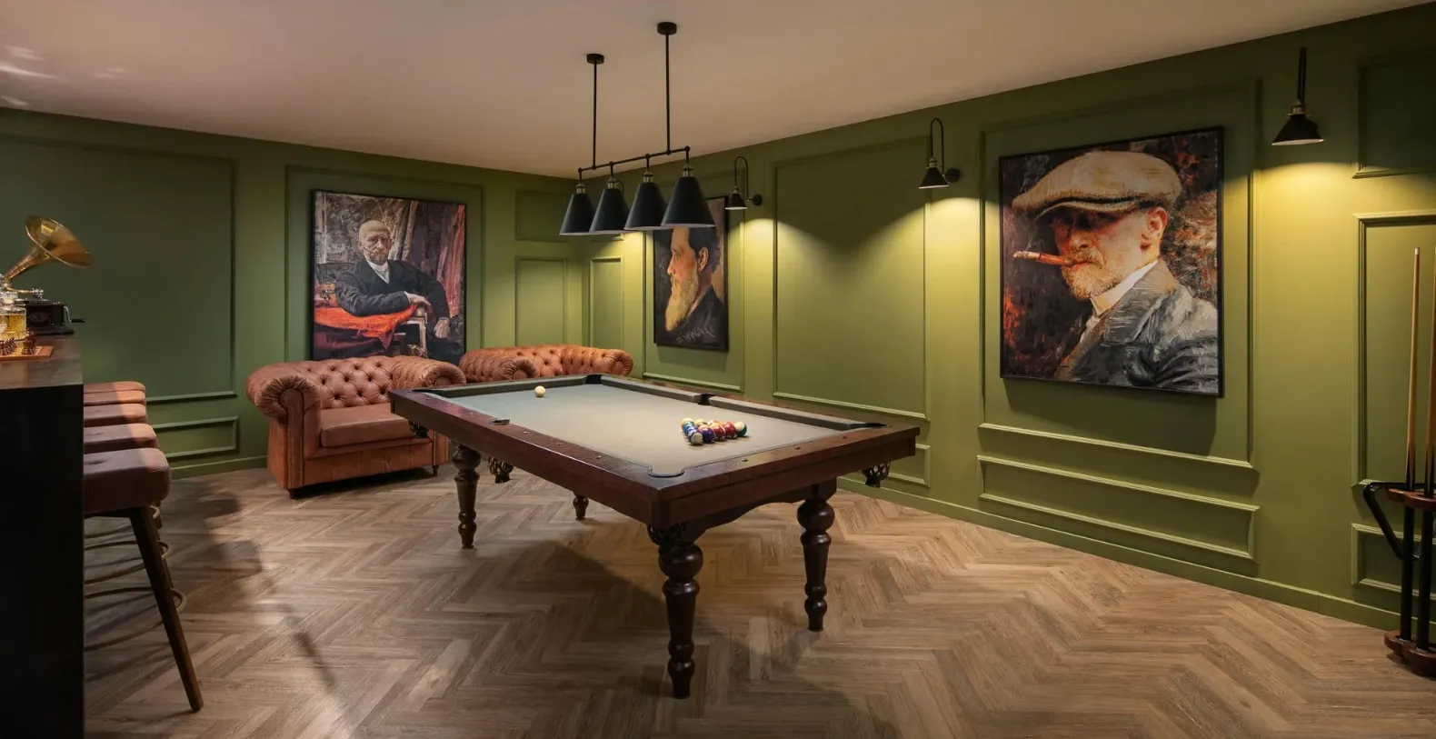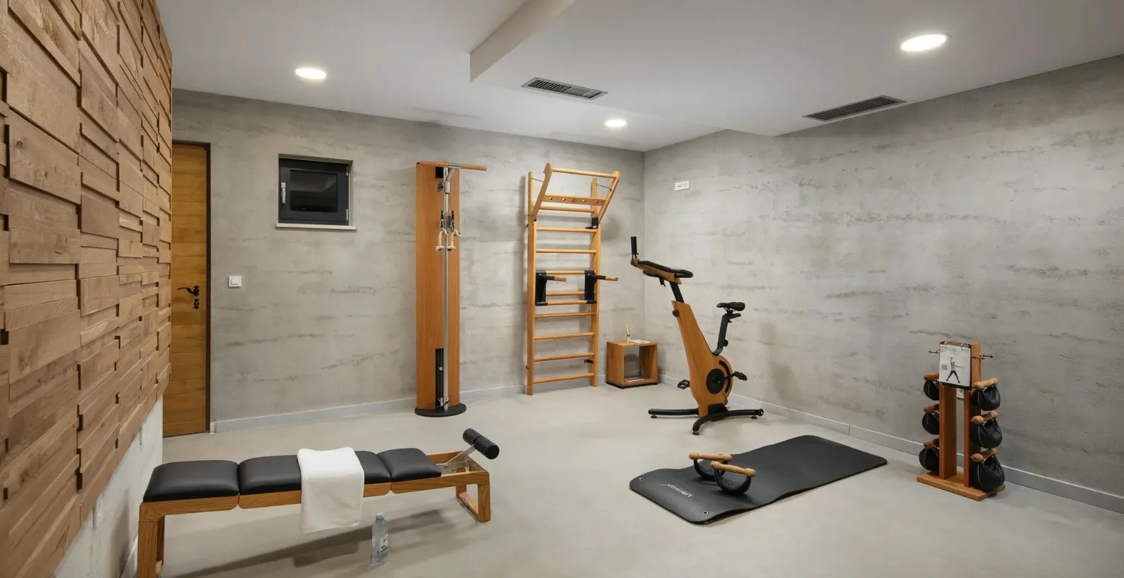 On the lower ground floor, Villa Elegant Residence transforms into a private retreat for wellness and entertainment. Guests can enjoy a fully equipped gym, a sauna, and a rainfall shower, as well as a stylish billiards room complemented by a wine cellar and an intimate gallery space. This level adds a layer of exclusivity, making the villa equally suited for relaxation and social gatherings.