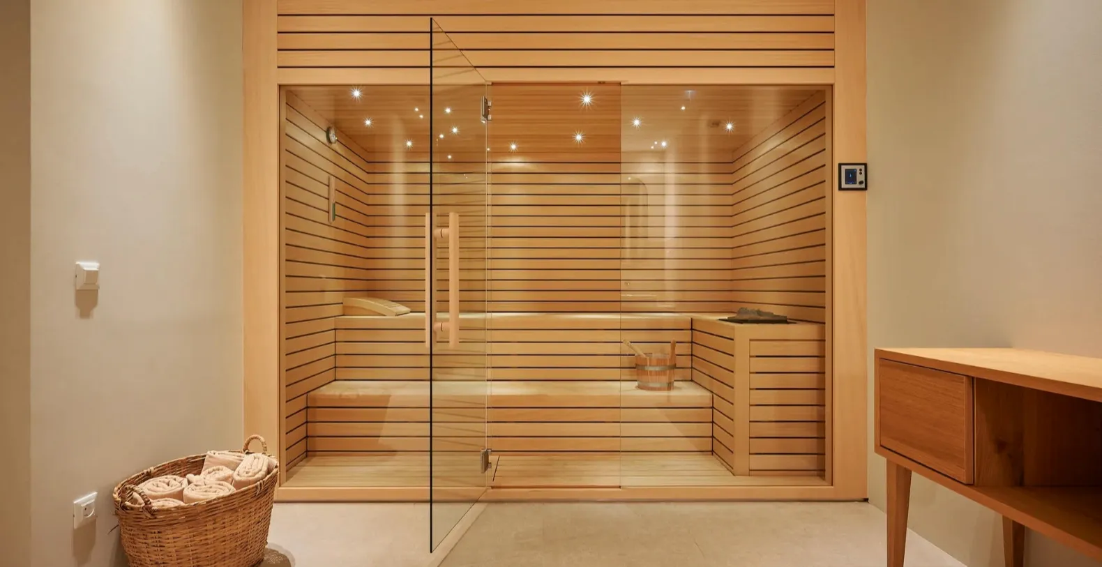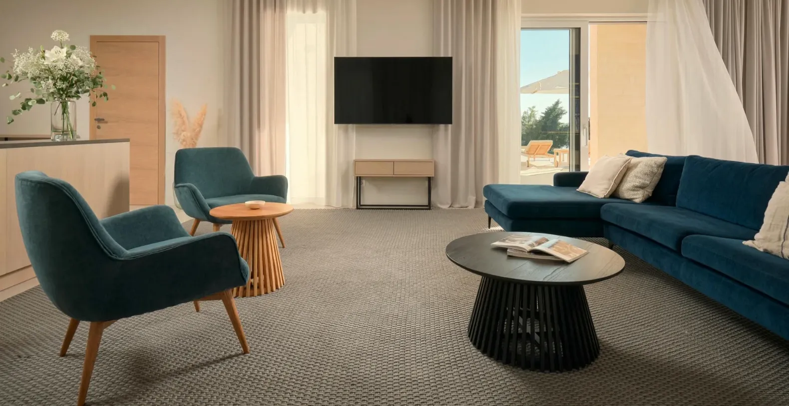 The villa boasts a private wellness area. The lower level reveals a private spa zone complete with a sauna and massage room, offering a secluded place for pure relaxation. For larger groups or multi-generational stays, Eternal Hvar can be rented alongside its equally stunning sister villa- Chloe, creating an exclusive private estate experience for up to 20 guests.