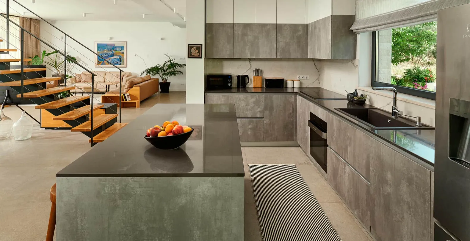 The interior spaces of Katina Residence are bright, contemporary, and thoughtfully designed to blend indoor comfort with the beauty of the Adriatic coastline. The open-plan living room flows effortlessly into a fully equipped modern kitchen and dining area, where large glass doors open toward the outdoor terrace. This seamless connection between indoor and outdoor living creates a welcoming atmosphere.