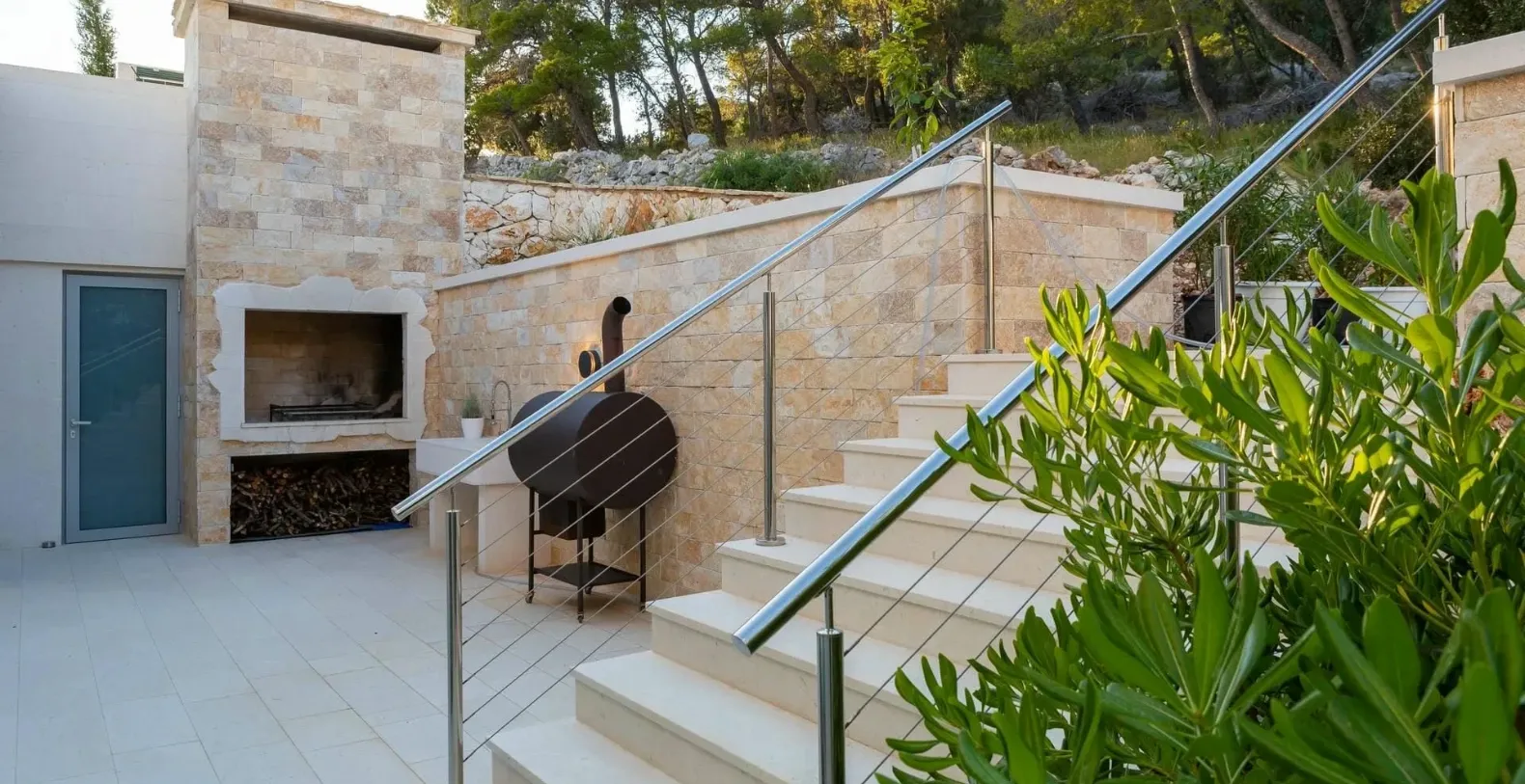 Spanning approximately 230 m² of sophisticated interior space and complemented by over 200 m² of terraces, Villa Andromeda is thoughtfully arranged across multiple levels to maximize privacy and connection to the outdoors. The main living level welcomes you with an open-concept layout where a sleek, fully equipped kitchen flows effortlessly into a stylish dining area and a bright, airy lounge. Floor-to-ceiling glass doors open onto the expansive pool terrace, where the Adriatic becomes your constant backdrop.