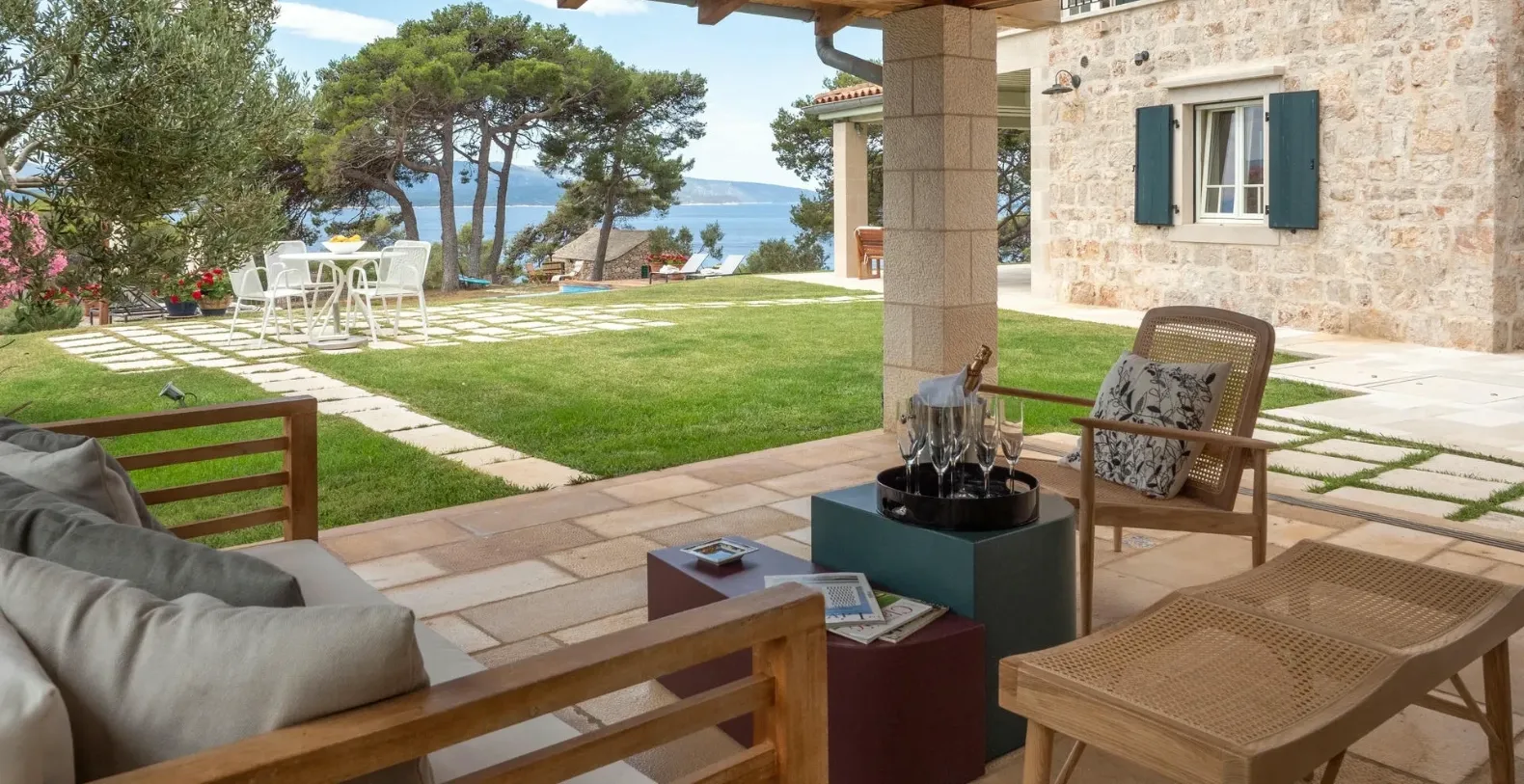 Villa Beachfront Oasis is a luxury beachfront vacation villa on Island Brač, offering privacy, sea views and access to a pebble beach. Set directly on the southern coast of the stunning island of Brač, Villa Beachfront Oasis is a refined Croatian family vacation retreat where timeless stone architecture meets relaxed Mediterranean elegance. Located just 70 meters from a beautiful pebble beach and only 3.5 km from the lively center of Bol, this exclusive beachfront villa offers an exceptional accommodation.