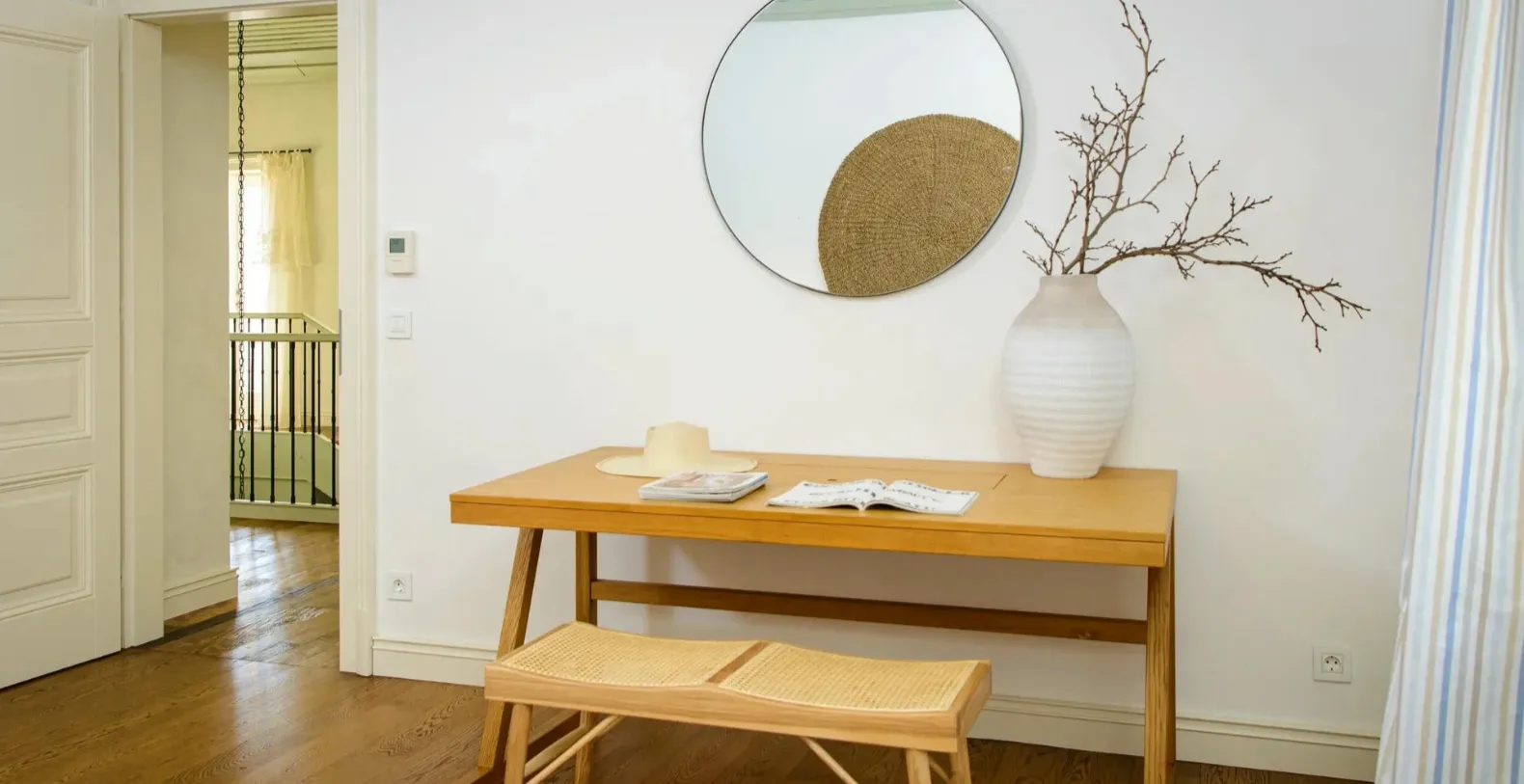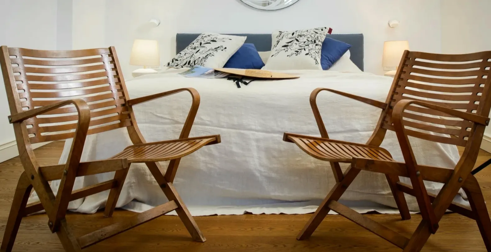 Spanning approximately 300 m² over two levels, Villa Beachfront Oasis comfortably accommodates up to eight guests across four beautifully appointed bedrooms. The ground floor hosts a stylish shabby-chic kitchen fully equipped for home cooking, seamlessly connected to the inviting living and dining area. Large doors open onto covered terraces furnished with lounge seating and dining tables, ideal for long alfresco meals overlooking the sea.