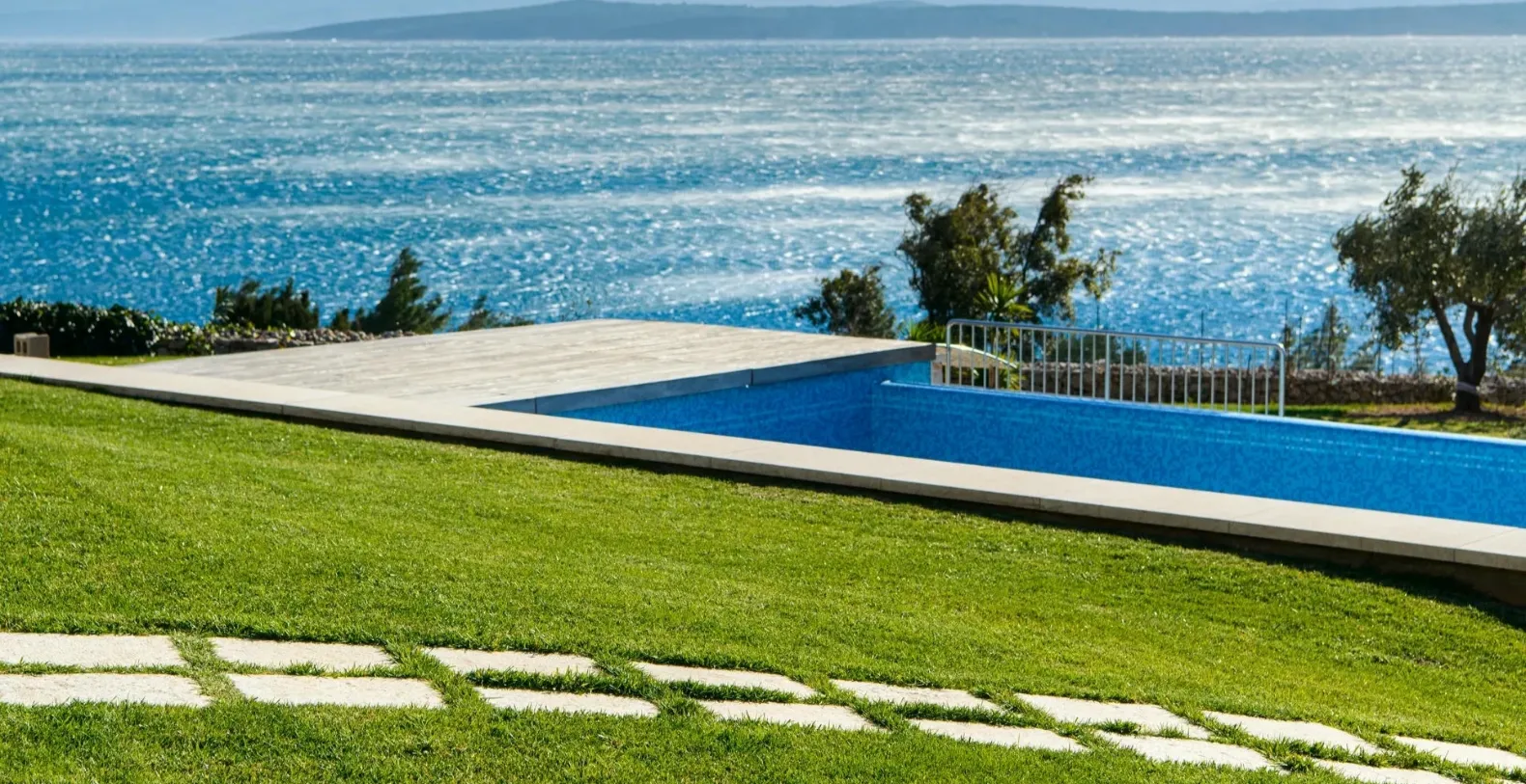Surrounded by a vast 7,500 m² private estate, the villa is designed for guests seeking complete privacy in a natural seaside setting. Manicured lawns, mature Mediterranean greenery, and flowering plants frame the property, creating a serene atmosphere that feels both luxurious and authentic. With private access to the beach just steps away, a refreshing swim in crystal-clear waters is always within reach.