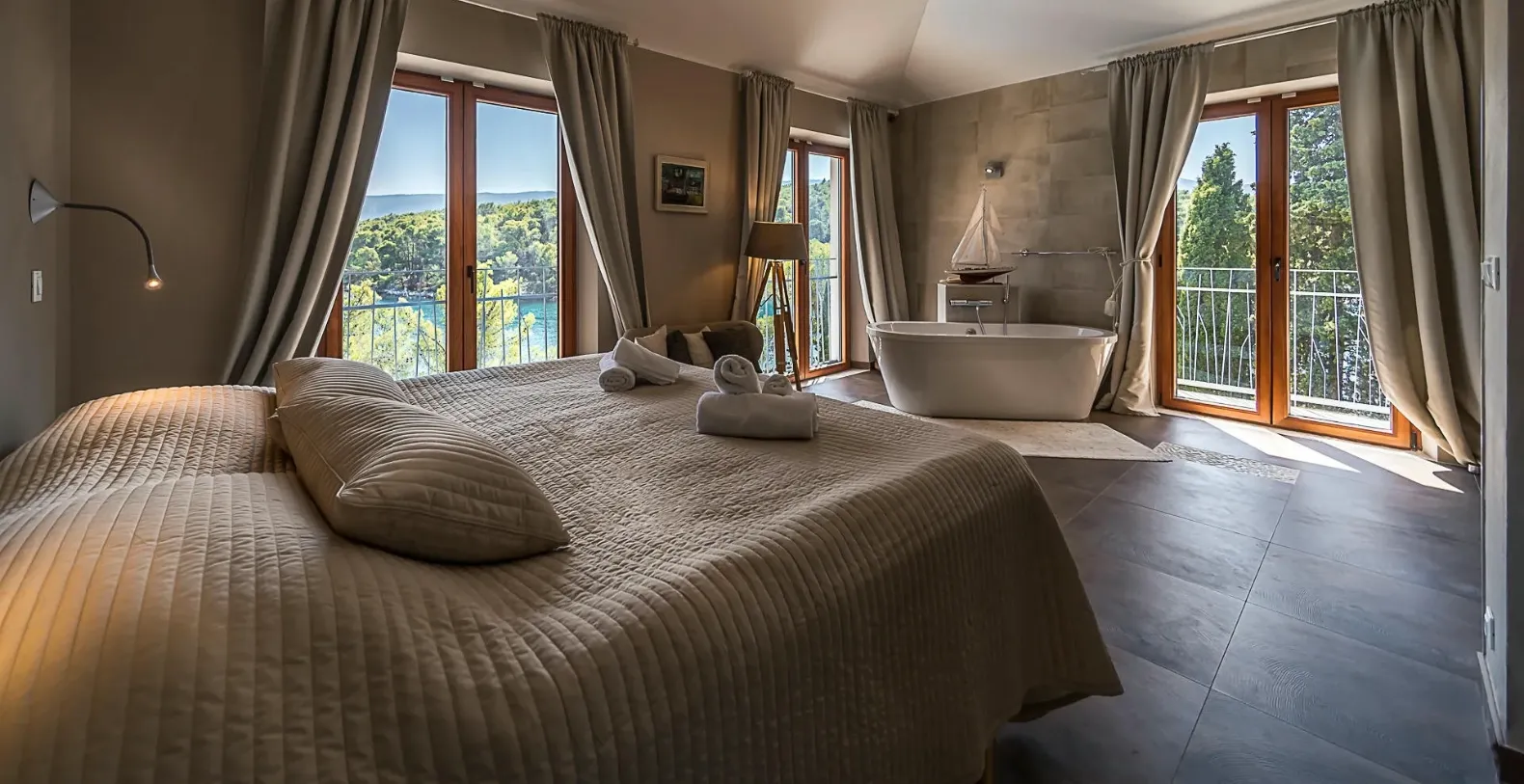 Villa Cora in Island Hvar is a luxury seafront vacation villa with private pool and sauna, offering refined retreat just steps from the Adriatic. Nestled in the charming seaside village of Vrboska on the island of Hvar, Villa Cora is a truly exceptional luxury vacation rental that combines privacy, nature, and direct access to the sea. Often referred to as “Little Venice” for its picturesque bridges and tranquil canals, Vrboska offers an authentic Dalmatian atmosphere, where stone houses, fishing boats, and pine forests create a peaceful setting.