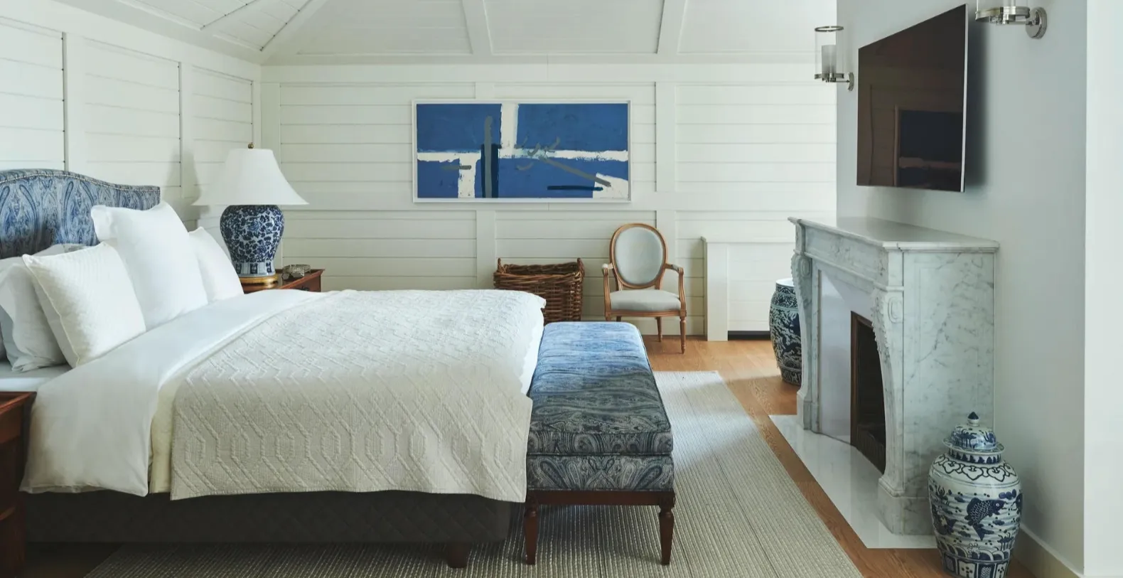 The villa offers five bedrooms, four of which (two king size and two queen size bedrooms) are located on the first floor of the property. The master bedroom Is located on t he second floor of the villa and offers a vintage sailboat cabin atmosphere with its beamed ceiling and white wooden paneling.
