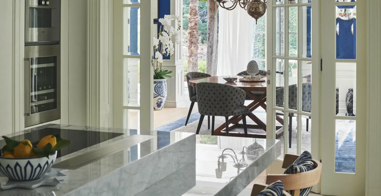 Spanning approximately 300 m² of interior space, Villa Hygeia accommodates up to 10 guests across five refined suites, including thoughtfully designed rooms suitable for families with children. The villa unfolds across three levels, connected by a private elevator, ensuring both comfort and ease of movement throughout. The villa offers sophisticated interiors with elegant blue tones echoing the surrounding sea. A spacious open-plan living area invites relaxation, while unique features such as a private wine cellar and home cinema elevate the experience beyond a typical luxury villa stay.