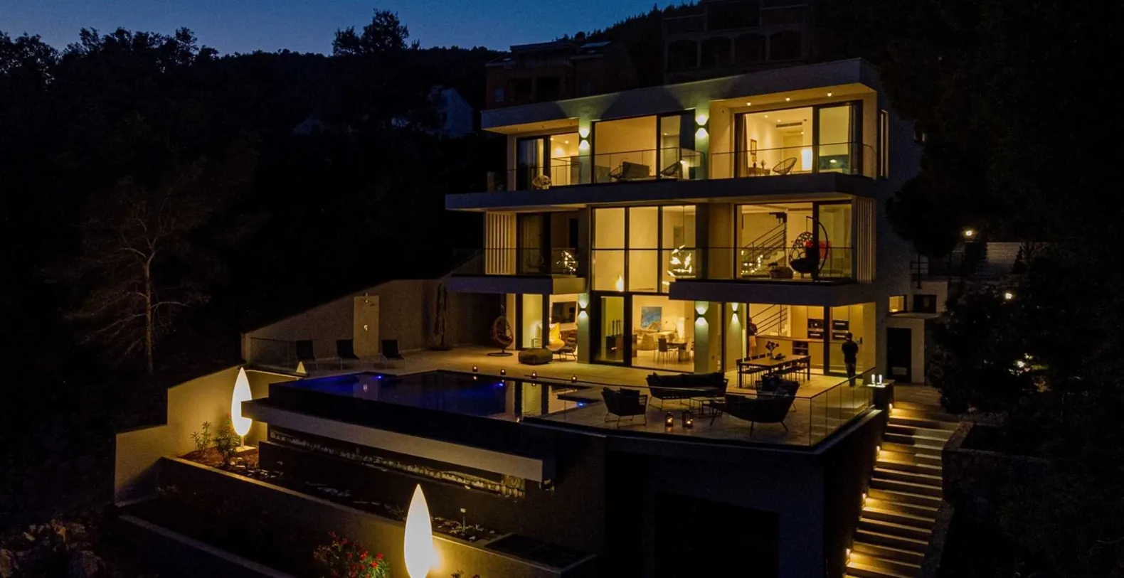 Villa S in Croatia is a modern, three-level vacation rental designed for luxury living and effortless relaxation. Located on the south side of the island of Korcula just 3km from the heart of Prizba the villa offers uninterrupted views of the Adriatic and direct access to the sea via a private mooring and rocky entry. Korčula island is considered to be one of the world’s top island destinations. Beautiful beaches, small surrounding islands and dense forests, it offers an incredible scenery in addition to that the island offers a rich cultural heritage with many places to visit and explore.