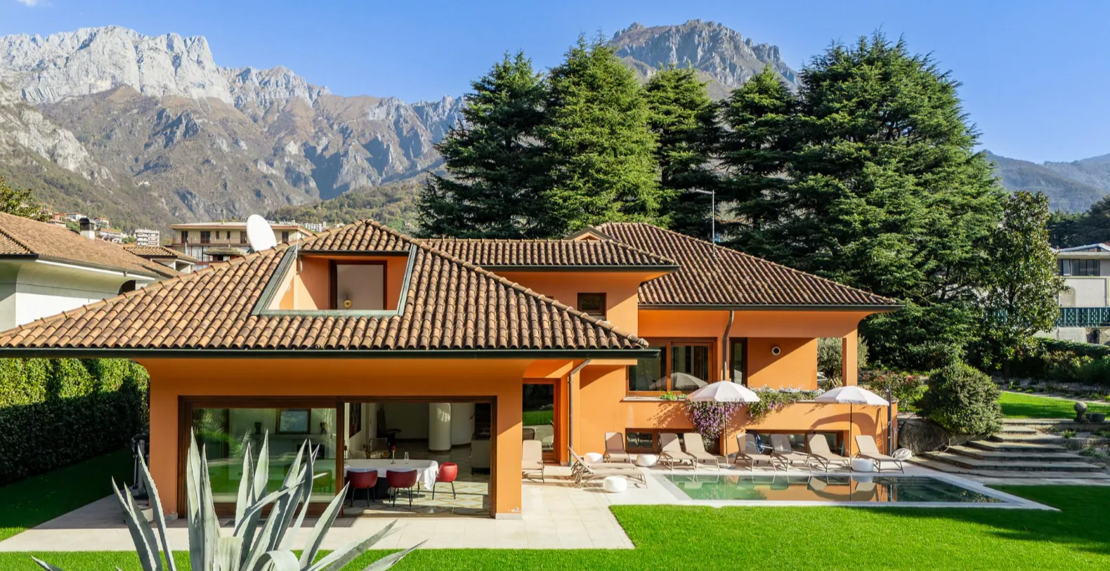 Villa Amanda is a newly refurbished luxury vacation villa, offering a serene lakeside retreat with a private garden and sweeping views over Lake Como. Set along a peaceful lakeside path in Mandello del Lario this elegant 450 m² property is surrounded by greenery and combines refined interiors with generous outdoor living, making it ideal for families or groups seeking privacy, comfort, and an authentic Lake Como experience.