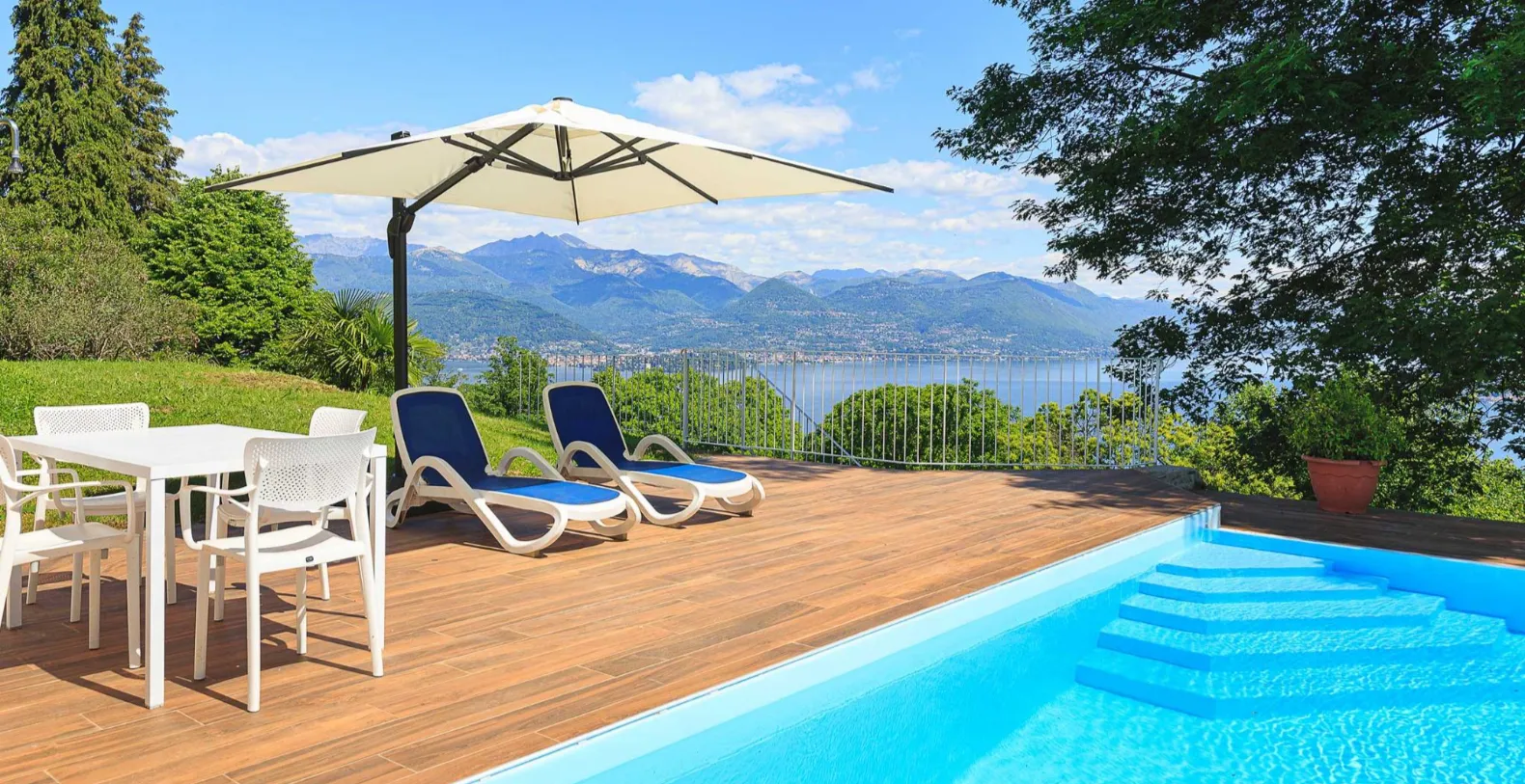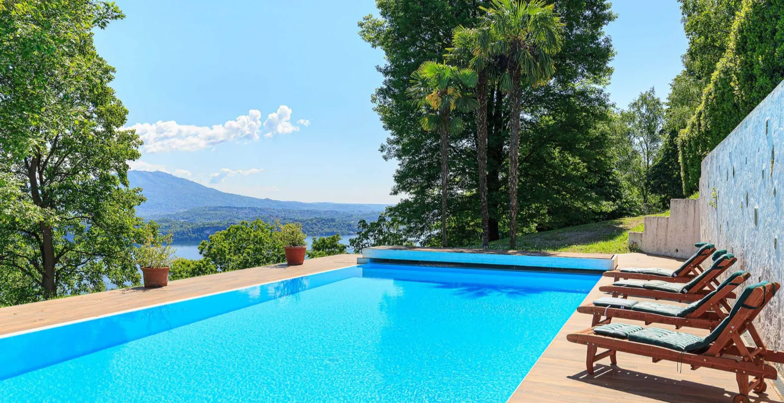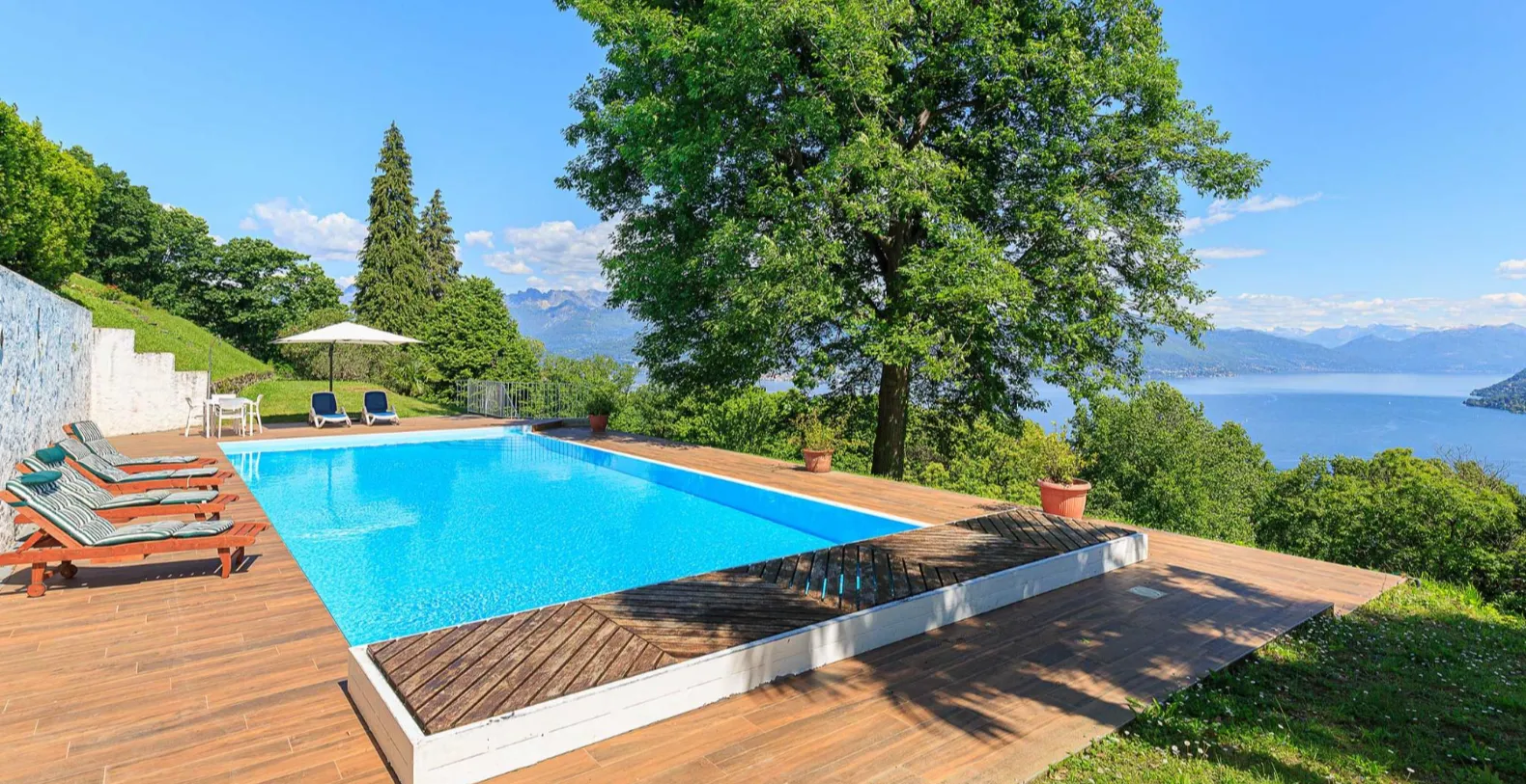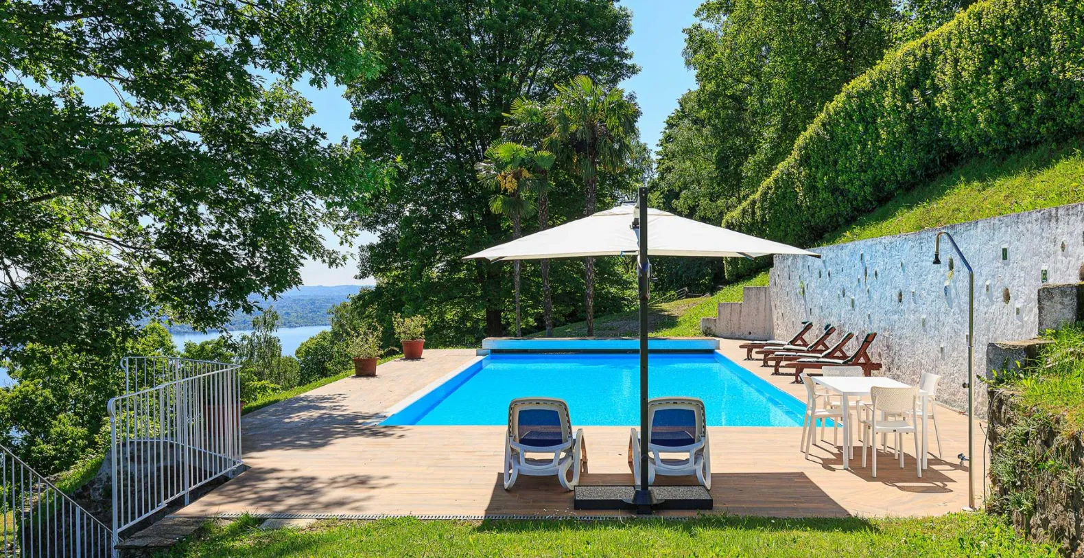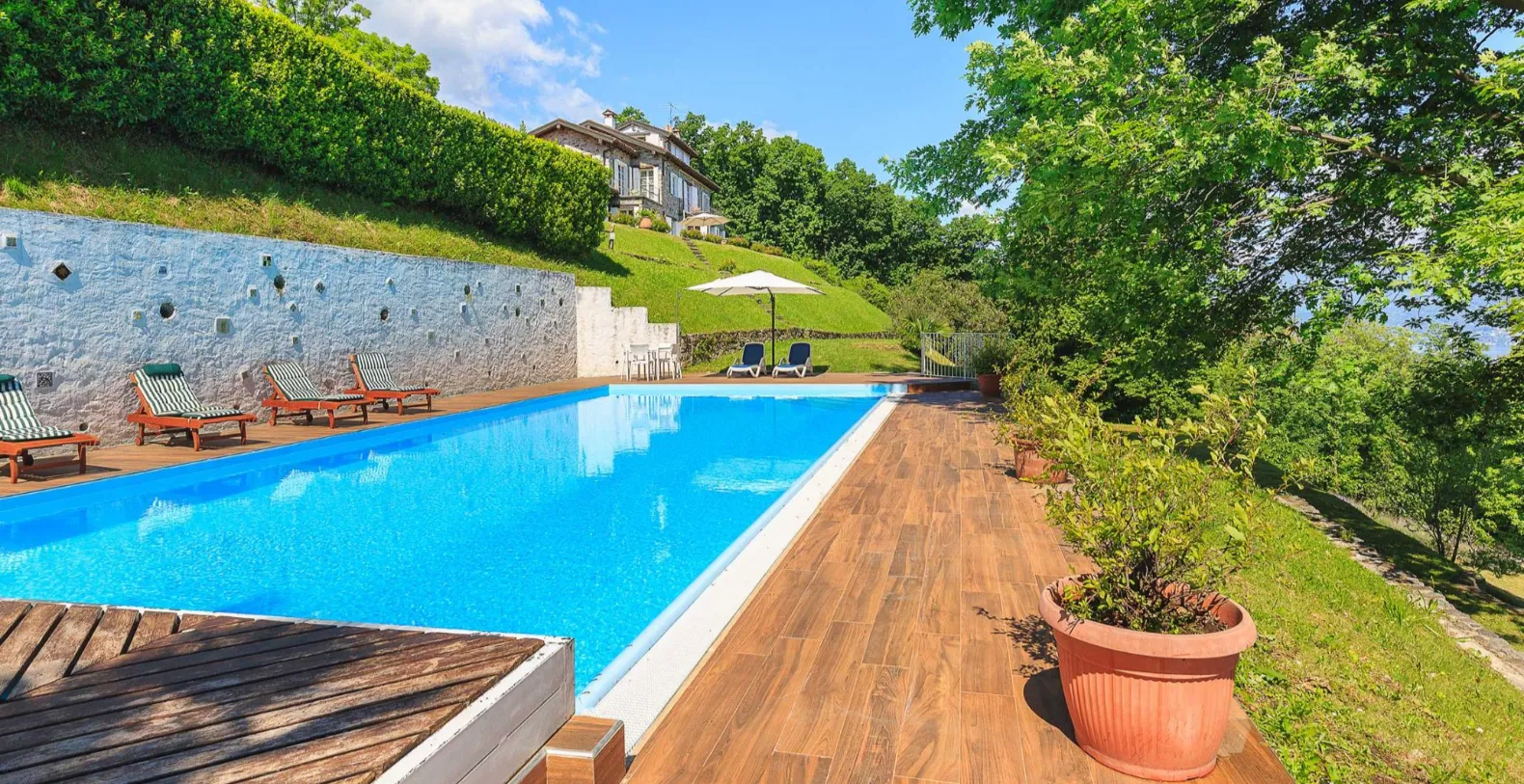 Poggio al Lago is a luxury vacation rental in the hills above Stresa on Lake Maggiore, offering sweeping lake views and expansive private grounds. Set within approximately 400 m² of living space, the villa comfortably accommodates up to 11 guests across six air-conditioned bedrooms, making it an ideal retreat for families or groups seeking both space and privacy. The prime location of the villa allows guests to enjoy both tranquility and accessibility, whether exploring nearby lakeside villages, embarking on boat excursions, or taking day trips to Milan, Turin, or even Switzerland.