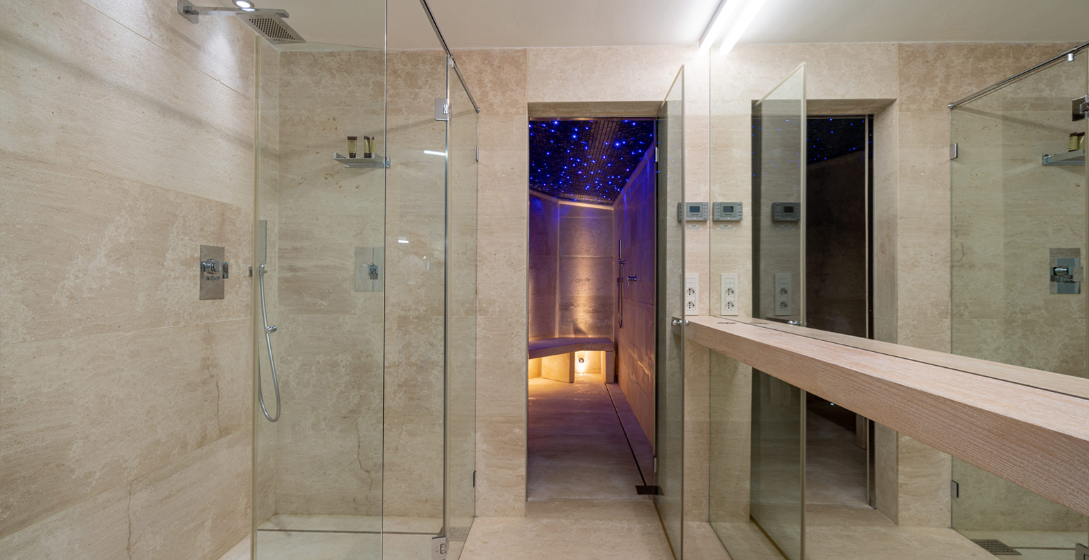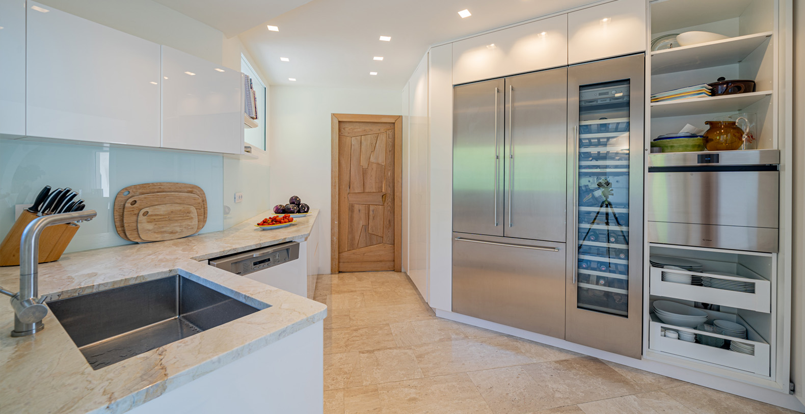 The villa consists of 7 bedrooms and 7 bathrooms, one of which is a staff bedroom. The villa’s main floor includes a spacious living/dining area, an equipped kitchen, large panoramic terraces with dining and sitting areas, three double bedrooms with en-suite bathrooms. The villa features a master bedroom suite with a walk-in closet, bathroom and private terrace is all on the villa’s top level. The lower pool level includes two additional double bedrooms with en-suite bathrooms, a home theatre, equipped fitness room and hammam, a staff bedroom with bathroom and laundry room