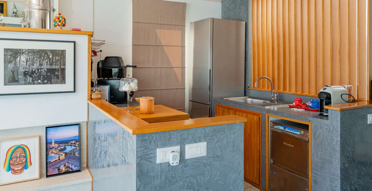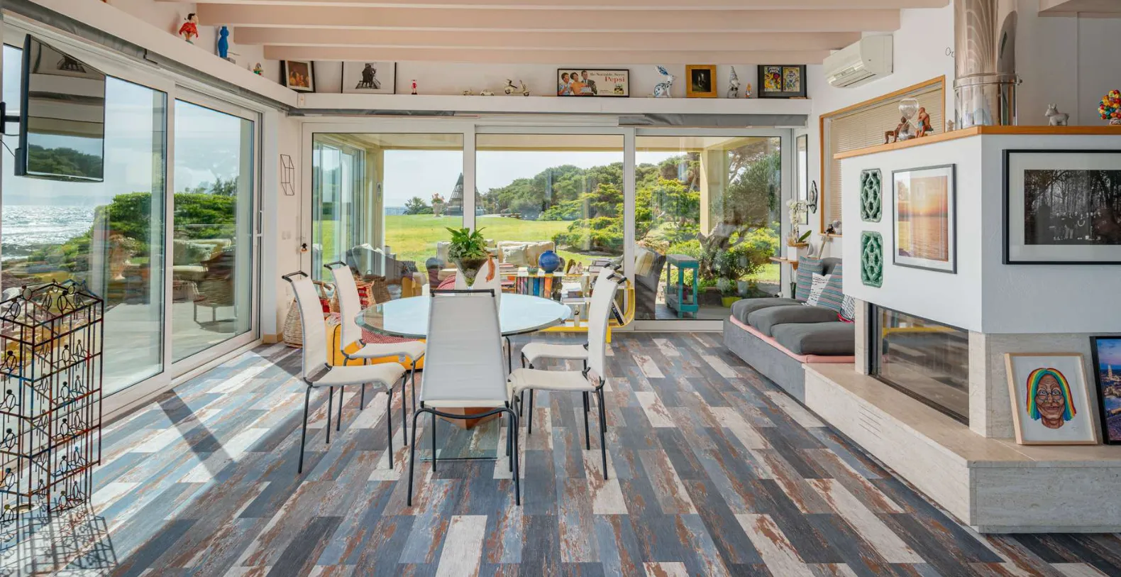 Inside, the villa features multiple bright and inviting living spaces filled with natural light and thoughtful design touches. Large windows and glass doors open to sea-facing terraces, ensuring every room benefits from the gentle sea breeze and stunning views. The modern kitchen and dining areas are perfect for shared meals, while cozy lounge spaces provide relaxed spots for relaxation.
