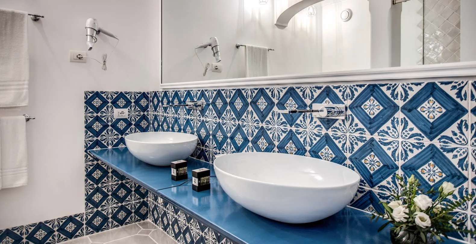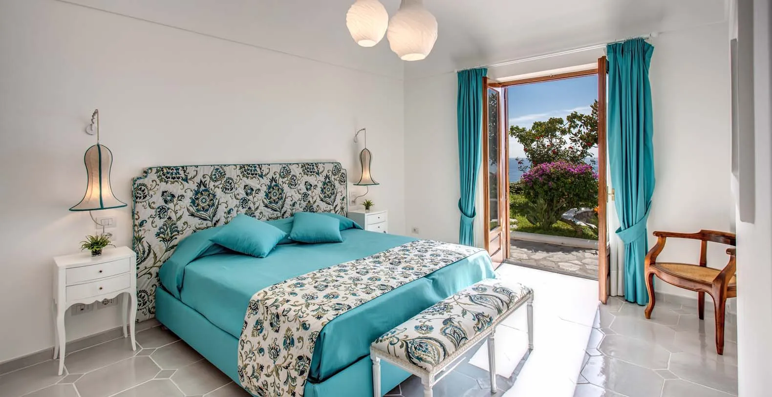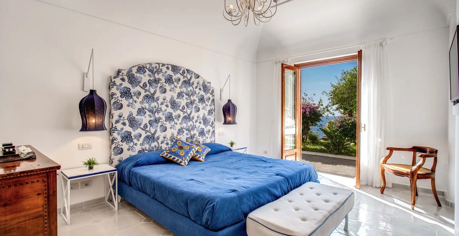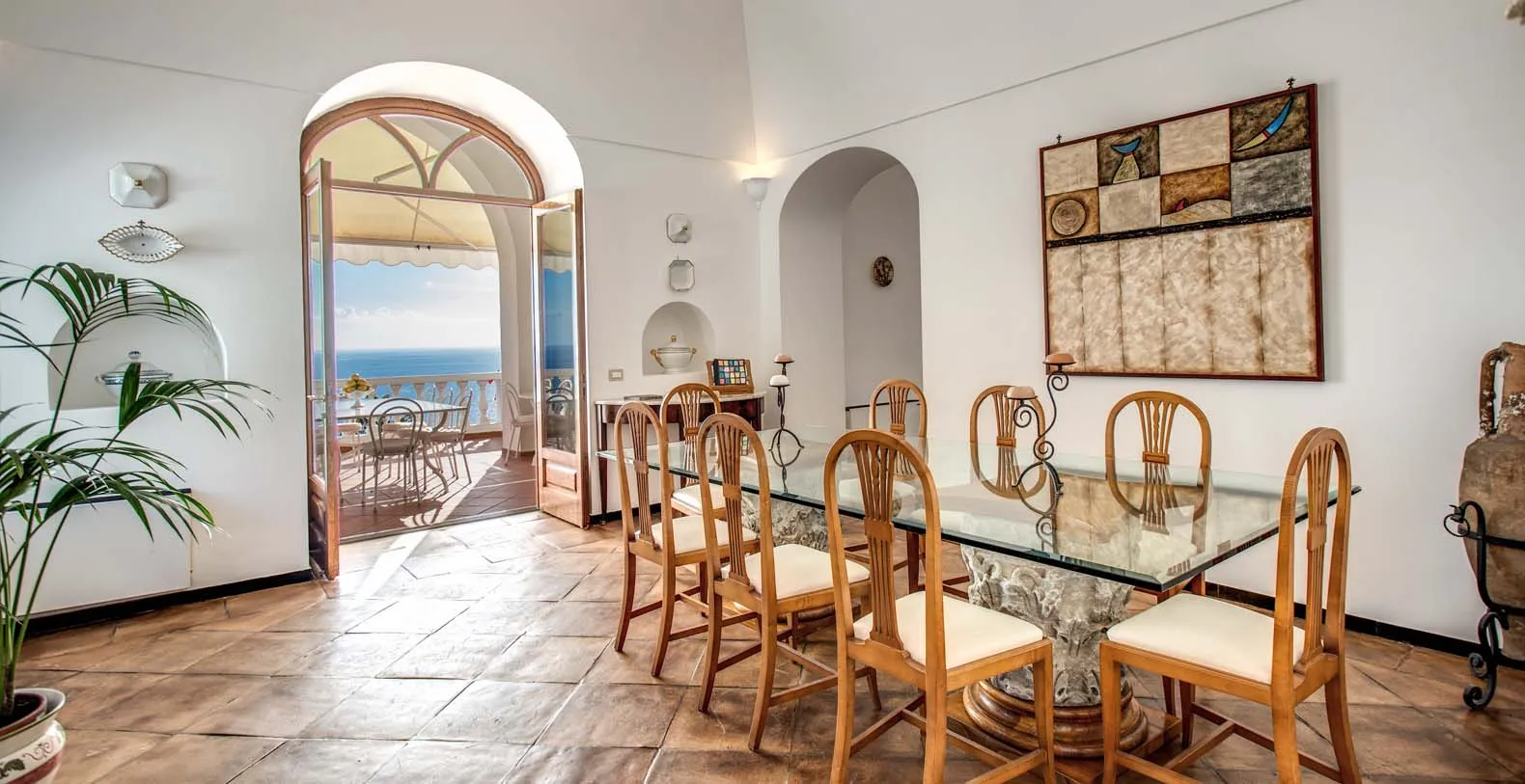 The amazing Villa Bideri is an Italian retreat located in a secluded and private area, perched up on the Amalfi Coast right in the centre of the village of Praiano.The Villa has a perfect location to explore the Amalfi area: 6.5 km to Positano, 8 km to Amalfi, 30 km to Pompei and 70 km to the Naples Airport. Villa Bideri is located just a few steps from the restaurants, bars and main shops. You will find the nearest restaurant 50 mts away, the SITA bus stop for the Amalfi Coast – Sorrento line – is a few meters away and the nearest beach is within easy walking distance. Surrounded by large terraces with Mediterranean plants and flowers, the villa boasts impressive views of the sea from Salerno bay to Capri, and Positano to Amalfi. About 150 meters from the villa begins 2 paths of steps that descend to the 2 main beaches of Praiano, one is near the Saracen Tower and the other is the Gavitella beach. Both the beaches are a 7/8 minutes decent down the steps. Here you can rent beach chairs and umbrellas and there is also a restaurant and a bar.