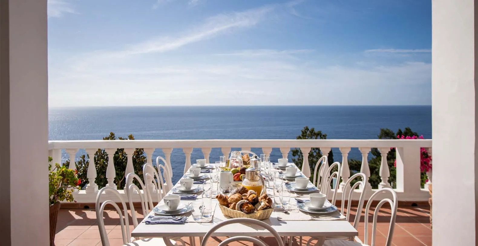 Villa Bideri blends perfectly with the natural surroundings, the house is a true Amalfi style building: all white with arched windows and columns. The property is spread over 4 floors. 3 Floors are at guests disposal: a lower floor, a ground floor and a tower up to the front door, which is accessed independently. The first floor of the building (between the ground floor and the tower) will be kept closed. The main access is from the terraces on the ground floor. there are the public rooms opening to a long terrace runing all around the floor with covered and uncovered areas to eat or sit and relax. An extensible curtain allows you to enjoy this area in every moment of the day. At the sunset or in the evening the cool breezes blowing from the sea will make perfect a dinner or a drink to sip in.