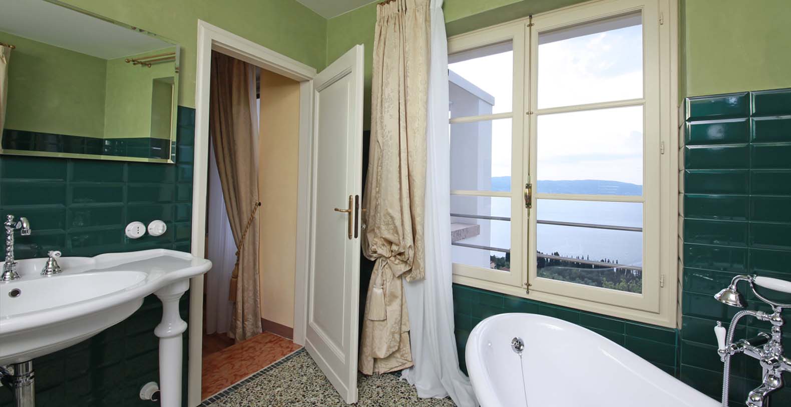 Tenuta Le Selve is an elegant and exclusive estate built on the hill of the west bank of the Garda Lake, a wonderful landscape for unforgettable holidays. Surrounded by the olive orchard grown on the neighboring plain, you can enjoy an unrivaled panorama, from the Lake’s lower regions to the historical church of the small Gaino town. Within the estate the mansion, was built in the 20's by Giancarlo Maroni, who also built the Vittoriale degli Italiani, the home of the poet Gabriele d’Annunzio.