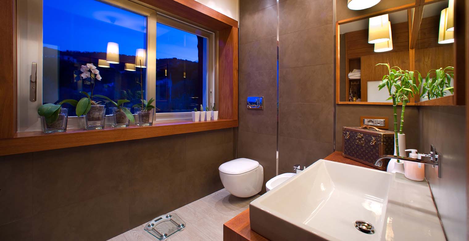 The first double bedroom on the right-hand side enjoys a built-in closet and en-suite bath inbuilt shower glass doors opening out onto the terrace. The second double room (can be converted to twin beds) also boasts and en-suite bathroom with bathtub and a window looking out onto the garden. Third double bedroom with en-suite bathroom with large shower box.