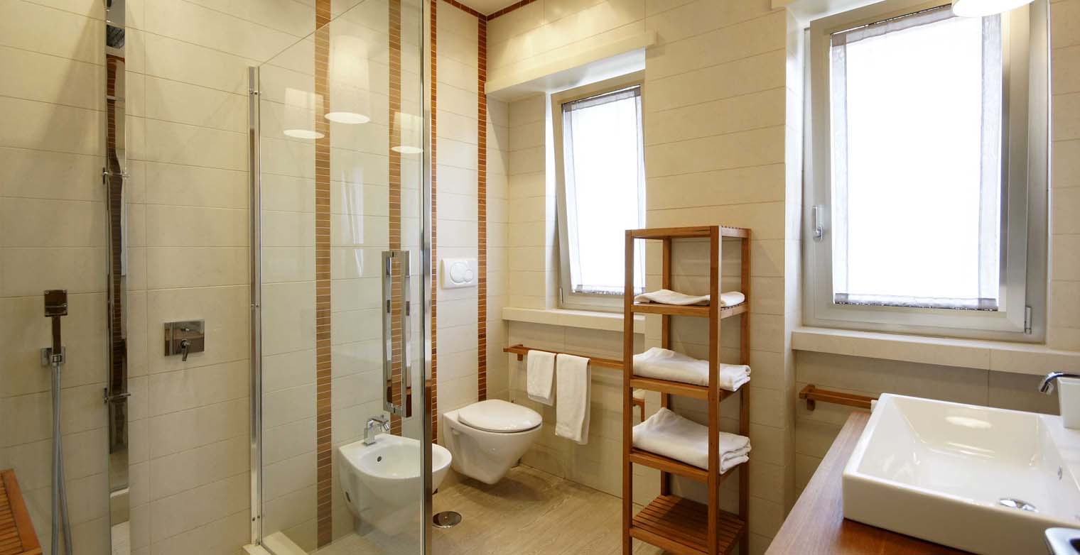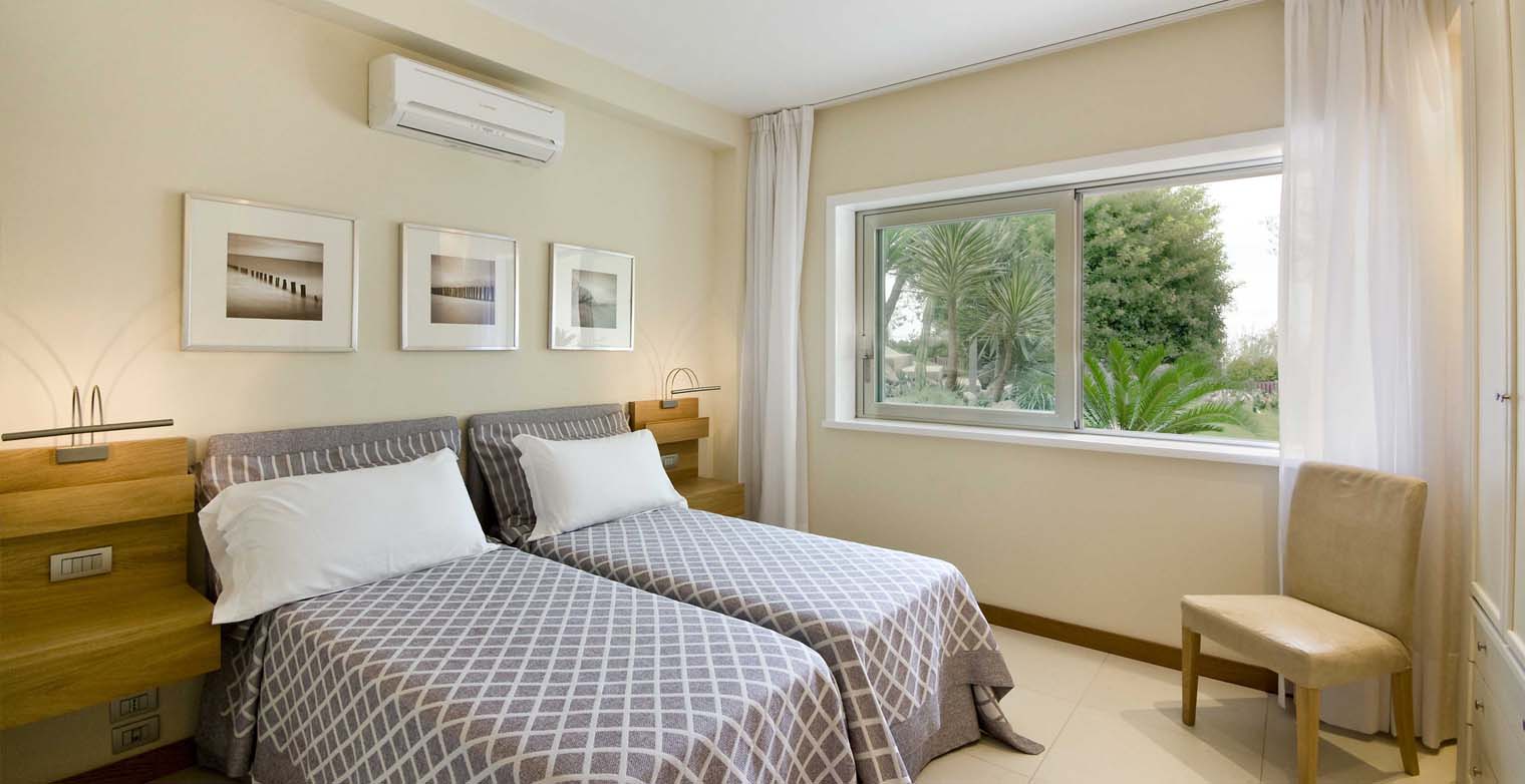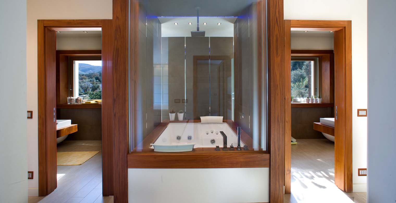 The second double bedroom enjoys a built-in closet with sliding doors opening onto a panoramic terrace. The bathroom boasts a shower. The third double bedroom (can be converted to twin beds) has a sliding door facing the olive grove garden. The en-suite bathroom enjoys a shower and bath tub.