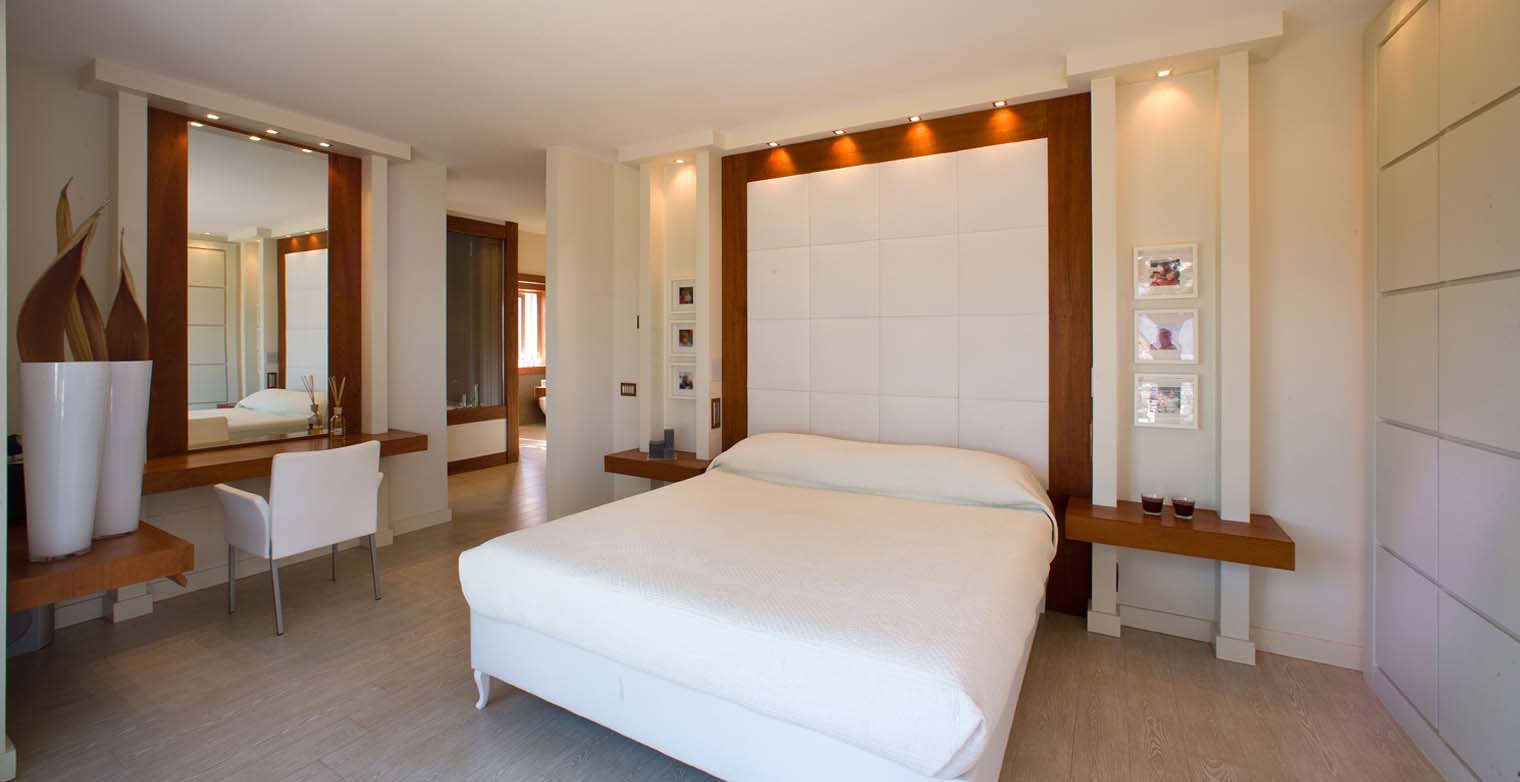 A master suite with a double bed with sliding door opens onto the terrace offering a panoramic view out over the town of Sorrento. The suite boasts a built-in closet. Two, private (him & her) bathrooms boast a Jacuzzi bath for two with chromatic lightning, accessible from both bathrooms.
