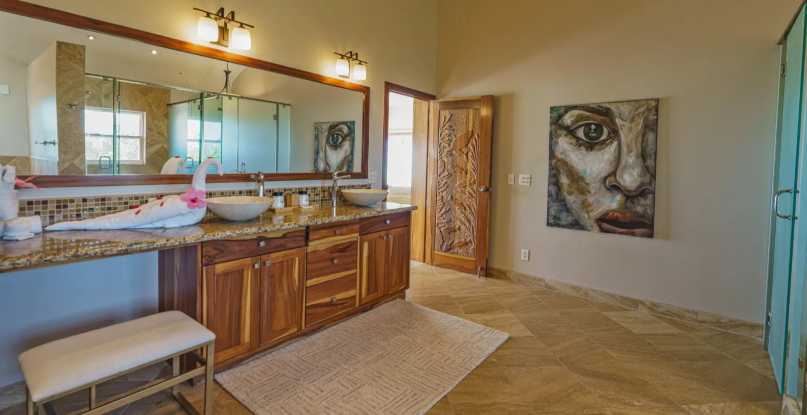 The main residence serves as the island’s social heart, featuring expansive indoor and outdoor living spaces, a dining area overlooking the ocean, and a fully equipped kitchen. Prince Island is designed for seamless indoor-outdoor living. At its center lies a stunning infinity-edge swimming pool surrounded by sun loungers, perfect for soaking up the Caribbean sun. A sandy beachfront stretches along the island’s perimeter, dotted with elegant canopy daybeds and gentle swaying palms. Whether you prefer lounging by the pool, kayaking in calm waters, or setting out on a snorkeling adventure, the island provides the perfect setting for both relaxation and exploration.