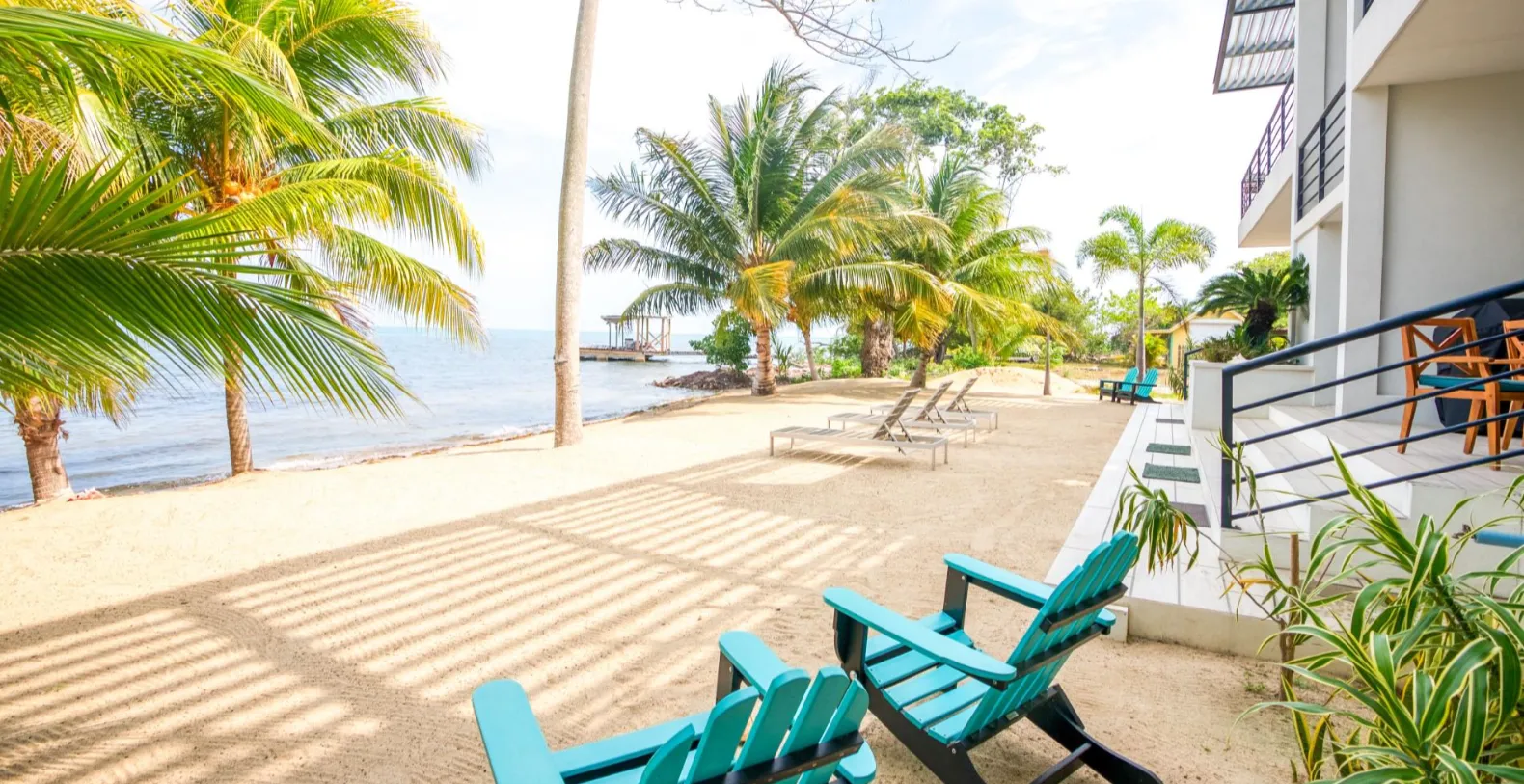 Sunset Gecko is a beachfront vacation complex, consisting of four condo unites with direct beach access and panoramic views. Set along the golden sands of Placencia’s picturesque Sunset Point Drive the complex is an oceanfront retreat designed for effortless tropical living, designed to accommodate up to 24 guests. It is part of an exclusive four-unit complex offering direct beach access, tranquil surroundings, and upscale amenities that make every stay unforgettable. It is great choice for larger groups or corporate retreats, multiple condos within this exclusive four-unit complex are booked together, providing the perfect setup for team getaways or company off-sites seeking luxury, privacy, and oceanfront convenience in Placencia, Belize.