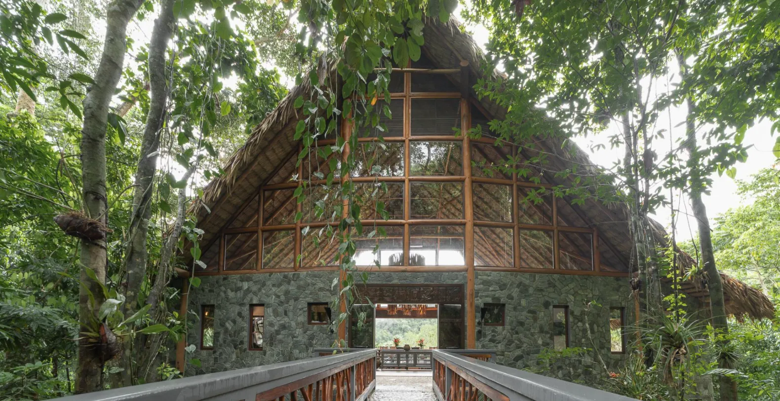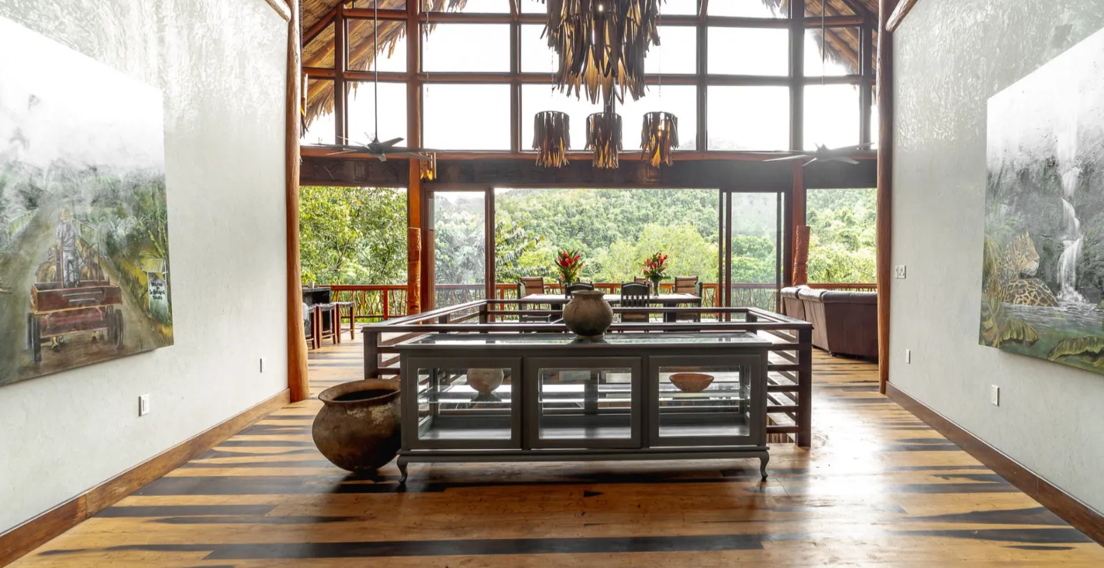 From the moment you cross the wooden bridge and step through the grand entrance, Valley Stream reveals its spectacular design. Soaring 30-foot ceilings made from native thatch and walls lined with rich Belizean hardwoods create a warm, organic ambiance that mirrors the beauty outside. Floor-to-ceiling windows frame panoramic mountain and forest views, flooding the interiors with light. Valley Stream offers two spacious and beautifully appointed master suites on the main floor, each with air conditioning and ensuite bathrooms. A large study with a full bath can double as a children’s bedroom, providing flexibility for families and groups.