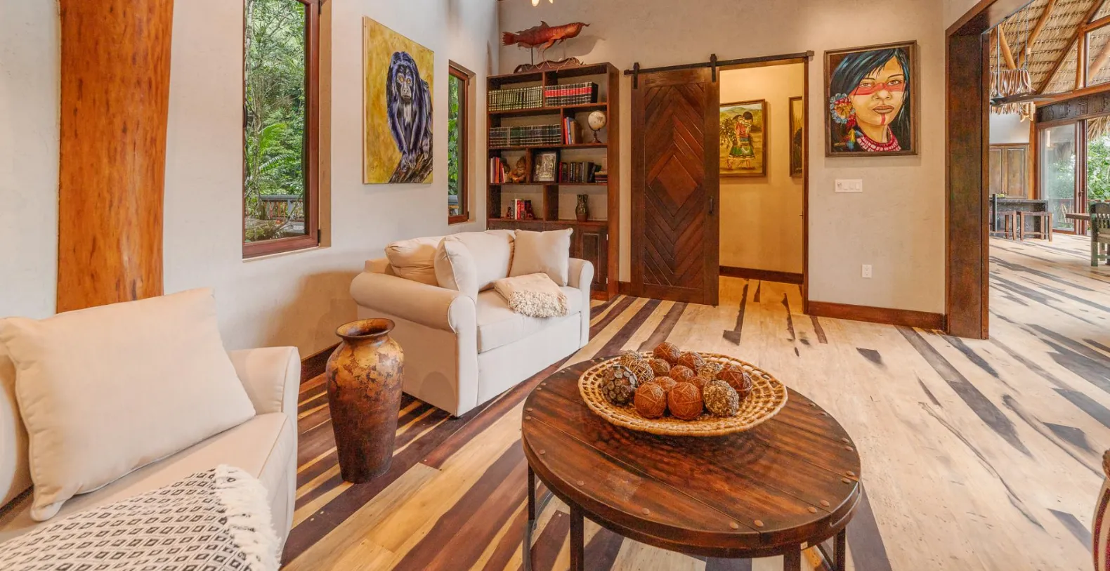 Deep within the lush Belizean rainforest, Valley Stream is a secluded luxury vacation villa offering a truly immersive jungle experience. Positioned high above a gently flowing stream and next to a postcard-perfect waterfall, this stunning 5,000-square-foot retreat is framed by spectacular views of the surrounding Maya Mountains. Reached via a scenic 1.5-mile drive through a manicured citrus orchard and dense rainforest, the villa promises complete privacy. The only sounds you’ll hear are the soothing rhythms of the jungle and cascading water, accompanied by the occasional calls of parrots, toucans, and other tropical wildlife.