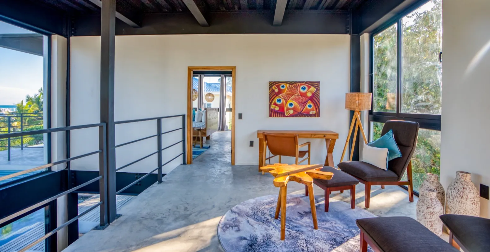 Villa Balam is a striking three-story beachfront residence, beautifully positioned in the exclusive Maya Beach area of the Placencia Peninsula. Set on a spacious private sandy lot, this contemporary villa boasts clean architectural lines, an industrial-inspired structure, and expansive glass walls that invite the natural beauty of Belize indoors.