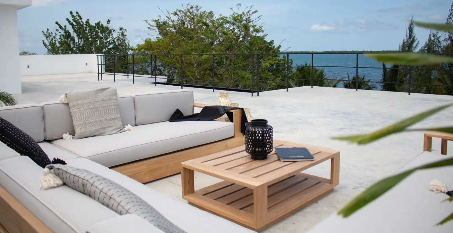 The villa’s open-concept layout flows effortlessly from one space to the next. Expansive windows frame palm-dotted beaches and shimmering waters, while minimalist interiors accented with natural wood create a sense of understated elegance. The heart of the home is a sleek, fully equipped eat-in kitchen that blends seamlessly into two relaxed living areas and a large open dining space—ideal for both intimate family gatherings and elegant entertaining. Villa Balam offers four beautifully appointed bedrooms, each with its own ensuite bathroom. Thoughtfully designed with both comfort and style in mind, the bedrooms feature natural wood accents, ample light, and soothing neutral tones.