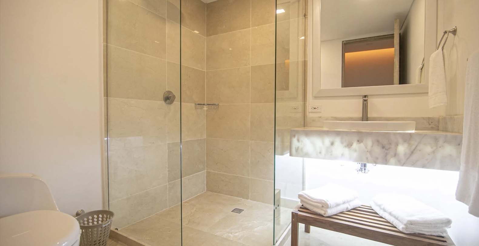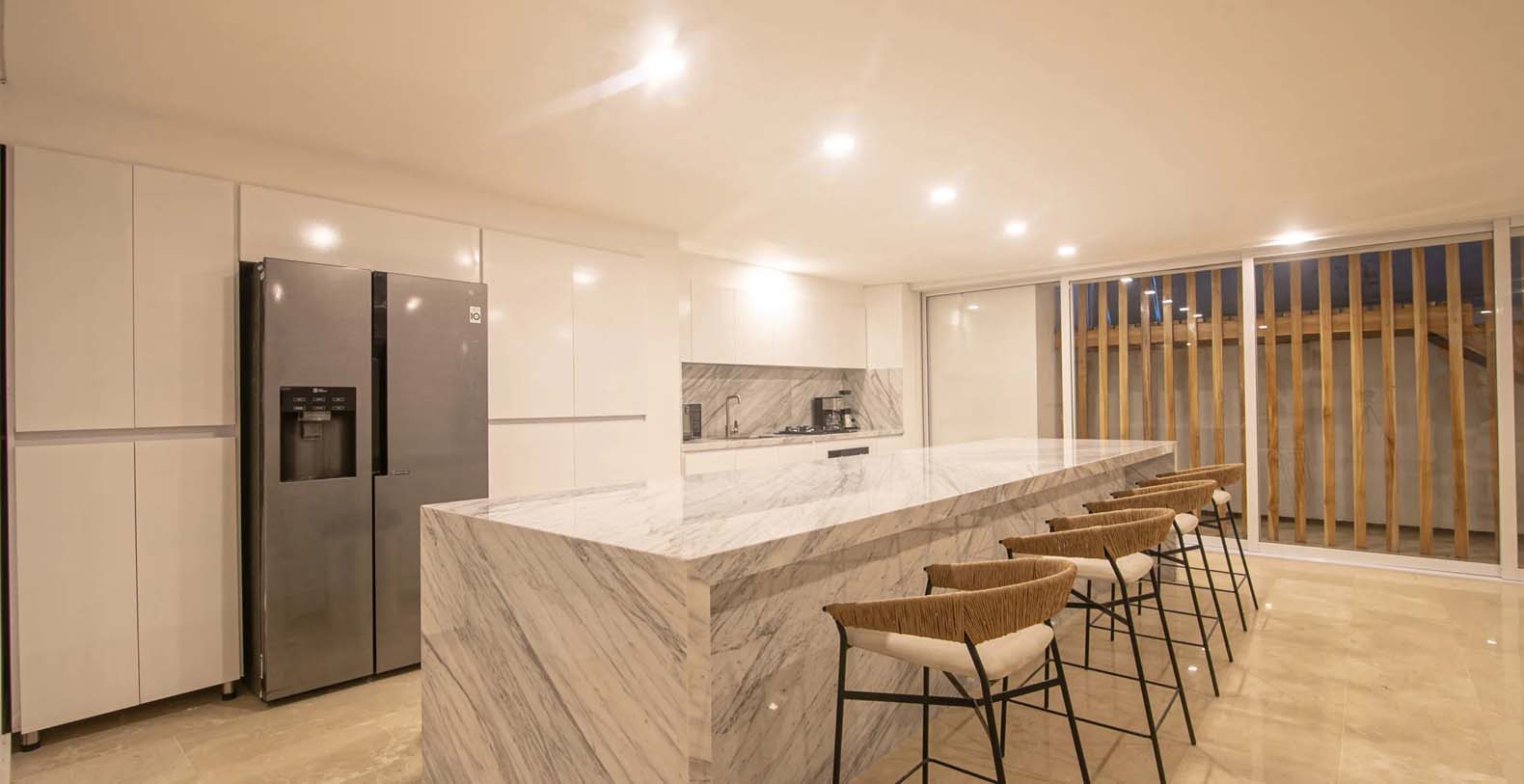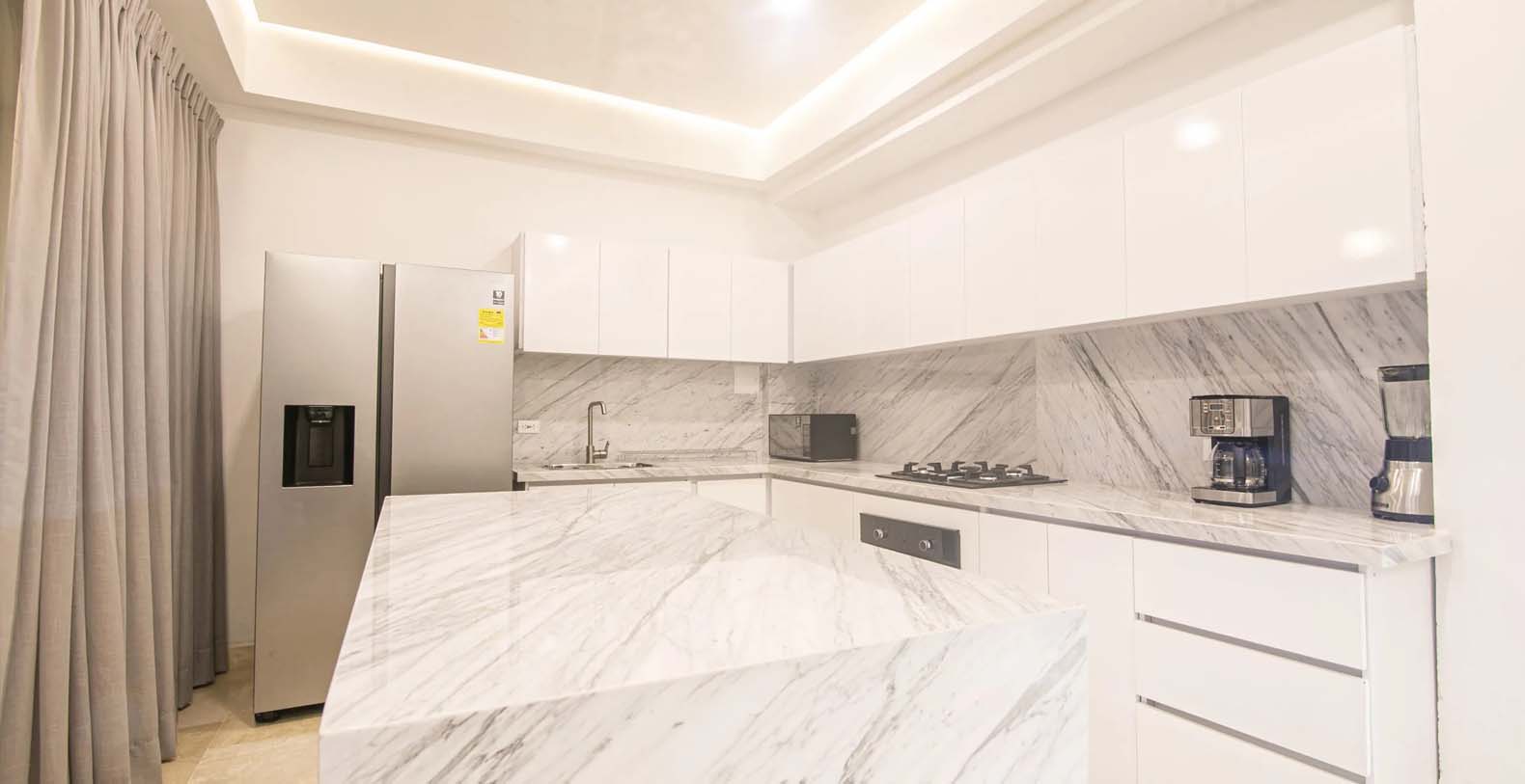 Oracle 16 is a new luxury vacation rental in the Iconic Cartagena, Colombia with amazing exclusive amenities. This beautiful vacation rental offers guests the ability to really spread out and enjoy the home, with the wonderful "old world" feeling mixed with truly modern touches. From the moment you walk in your are met with a beautiful large living space with polished marble and travertine throughout. Waterfall Kitchen Island in Marble with stainless upmarket appliances. A one of a kind large luxurious master suite with soaking tub and a very large master bathroom, great for families who want to spread out.