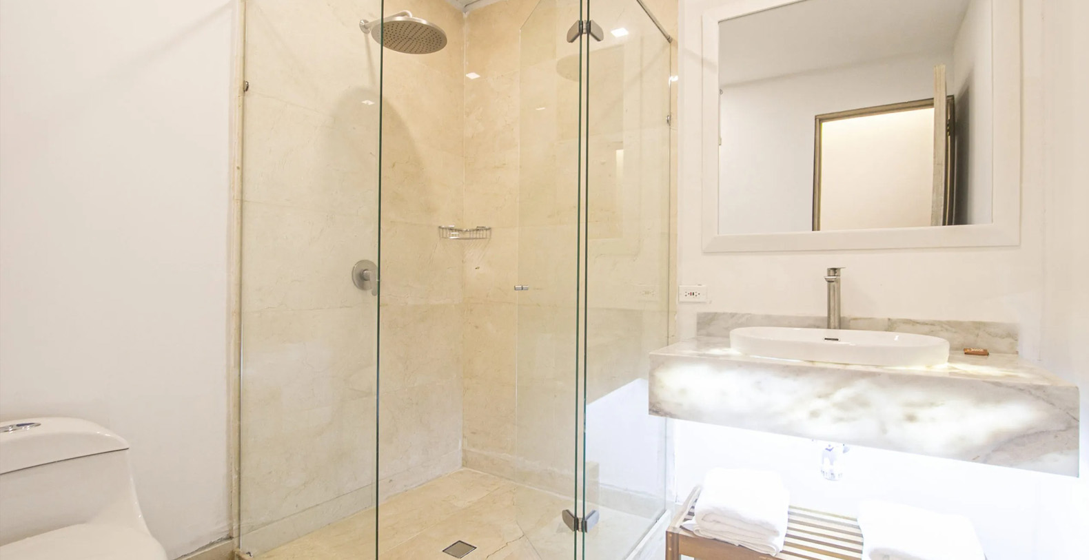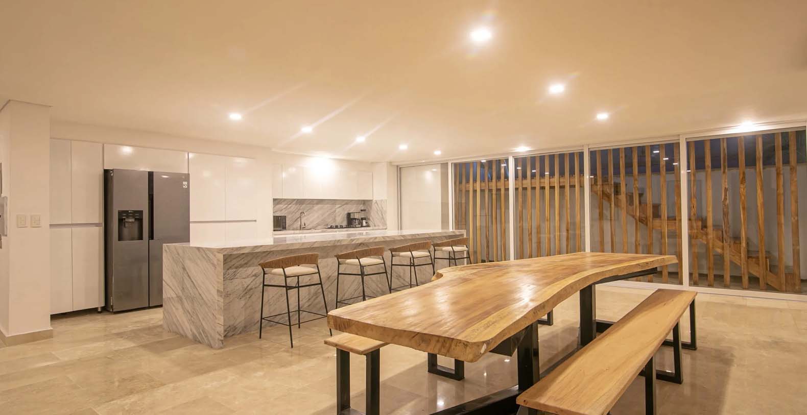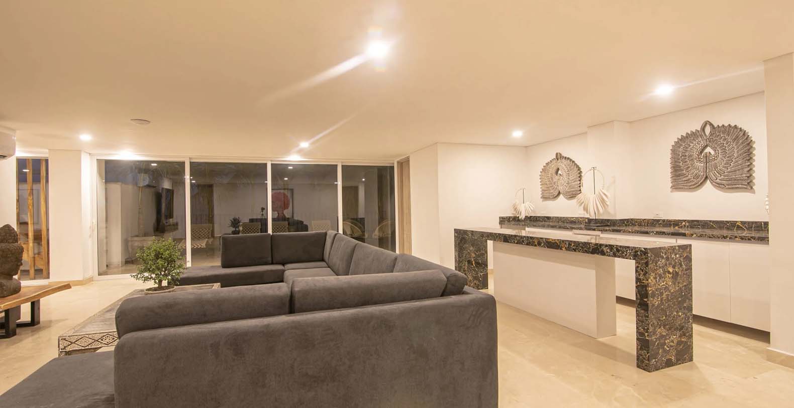 Oracle 16 is a new luxury vacation rental in the Iconic Cartagena, Colombia with amazing exclusive amenities. This beautiful vacation rental offers guests the ability to really spread out and enjoy the home, with the wonderful "old world" feeling mixed with truly modern touches. From the moment you walk in your are met with a beautiful large living space with polished marble and travertine throughout. Waterfall Kitchen Island in Marble with stainless upmarket appliances. A one of a kind large luxurious master suite with soaking tub and a very large master bathroom, great for families who want to spread out.