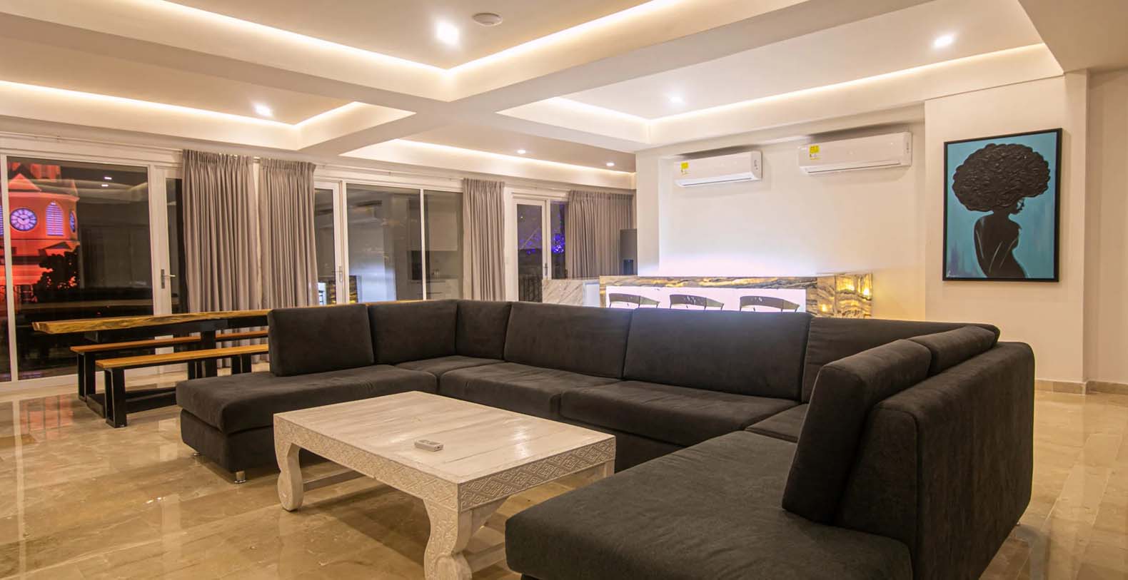 Indulge in luxury villa rentals in Cartagena, Colombia. Experience the opulence of this fully redeveloped mixed-use building, offering a 16-bedroom, 18-bath, 14,000 sq ft villa on the 2nd & 3rd floors. Enjoy breathtaking views of Torre de Reloj, Muelle de Los Pegasos, and the Cartagena Skyline from Plaza de Los Coches, the iconic gates to the Old City. With full-time butler, cook, cleaning services, and security, this villa boasts 2 private pools, sun decks, BBQ areas, master bedrooms, and exquisite entertainment spaces. Ideal for large groups and private events.
