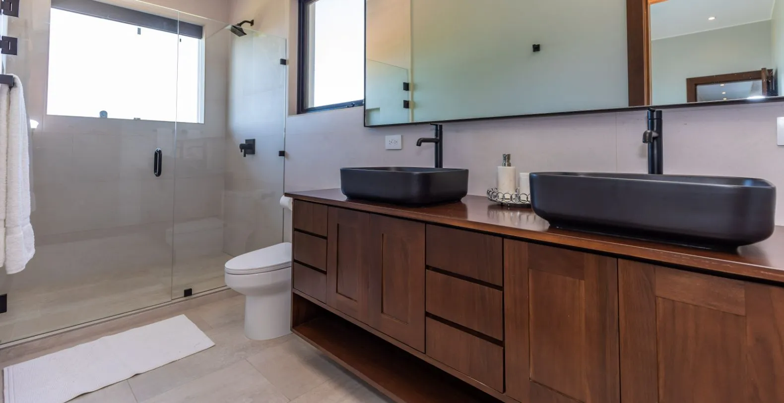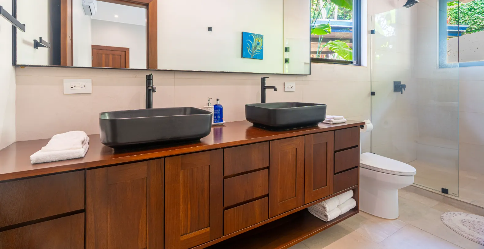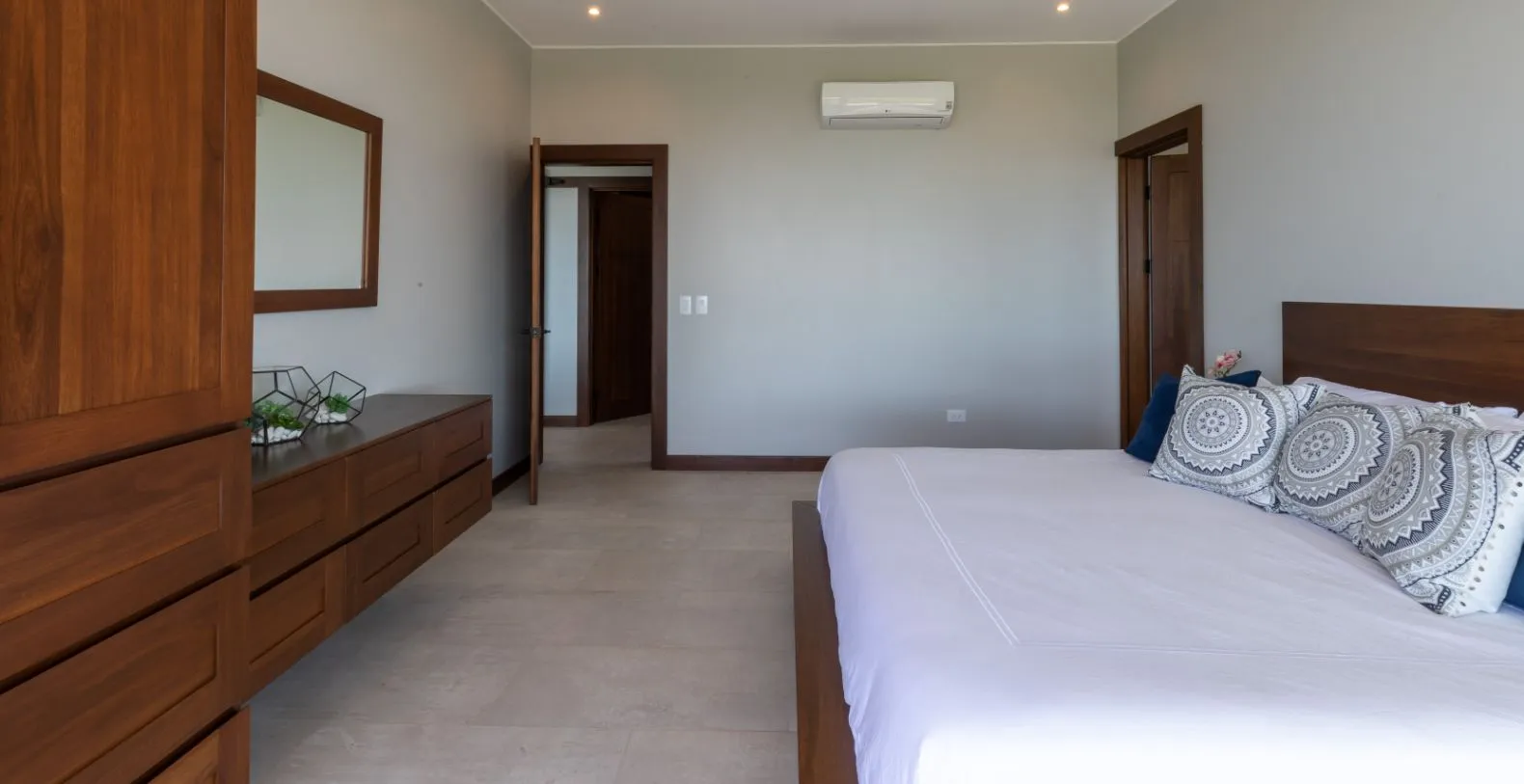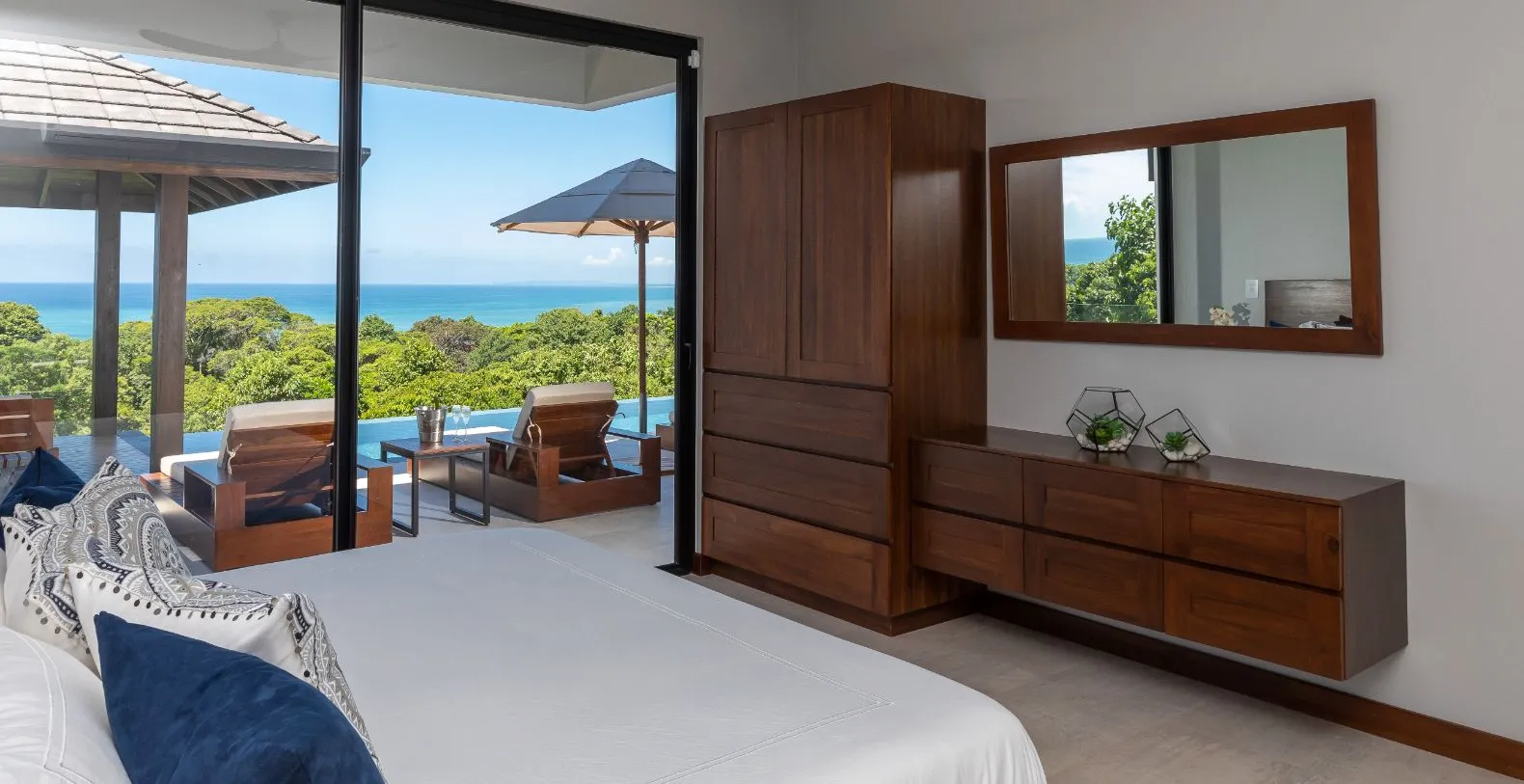 Casa Solaz features four spacious king-size bedrooms, each equipped with an ensuite bathroom, ensuring privacy and comfort for up to 8 guests. Every room has been meticulously designed to capture the beauty of the surrounding landscapes, with floor-to-ceiling windows that bring in natural light and provide uninterrupted views of the Pacific. Air conditioning and Wi-Fi are available throughout the villa, keeping you connected and comfortable in this tropical paradise. The villa’s expansive 100-foot terrace is a highlight, perfect for lounging and enjoying the breathtaking sunsets over the ocean. Guests can unwind by the poolside or gather in the shaded seating area to enjoy alfresco dining. The outdoor dining and lounge spaces are designed for relaxation and socializing, making it easy to transition from sunbathing during the day to stargazing at night.