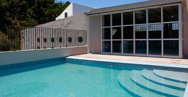 The 5th suite is on the second floor and also has an exit to the pool area.