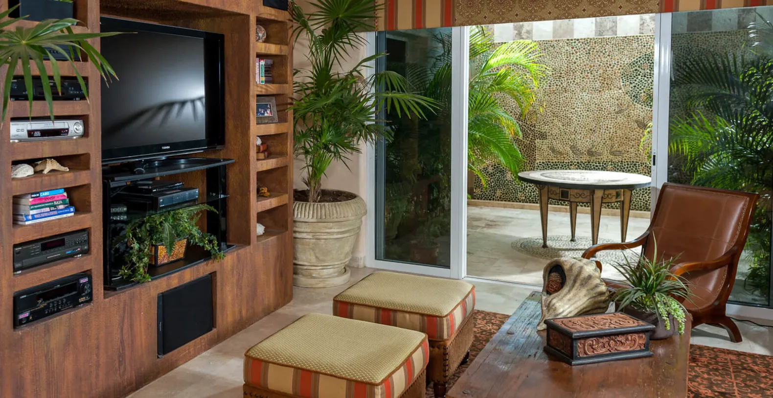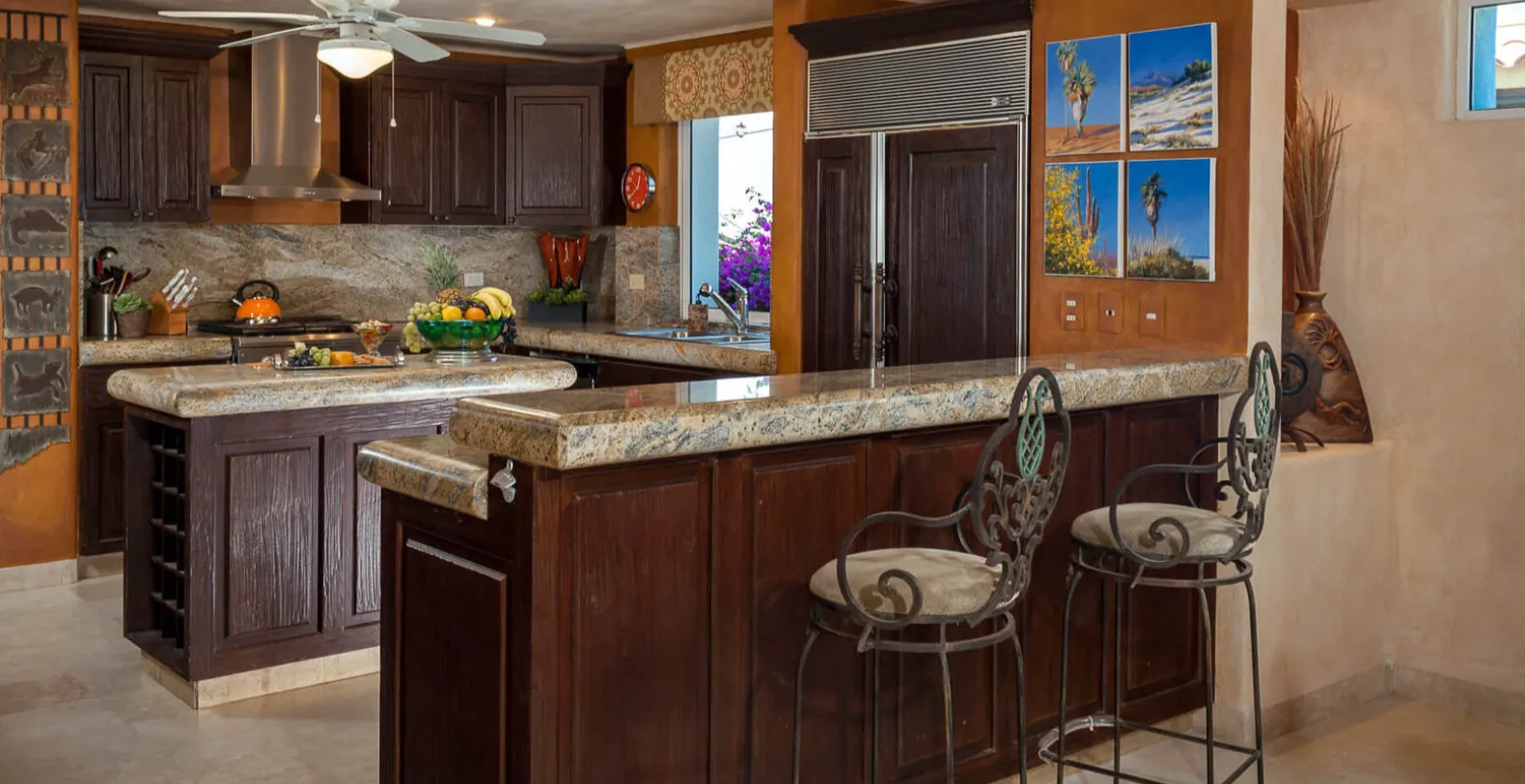 From the exterior, Casa Alcini has a southwestern flavor with cacti and other natural flora. A water feature contrasts the arid landscaping and makes for a momentary escape just prior to entering the house. Have the perfect Cabo getaway with your family and friends at Casa Alcini! Let our staff @dreamexoticrentals create a beautiful experience for you and your family, including daytrips to whale watch, swim with the dolphins, diving and cultural tours. Anything is possible in Mexico!