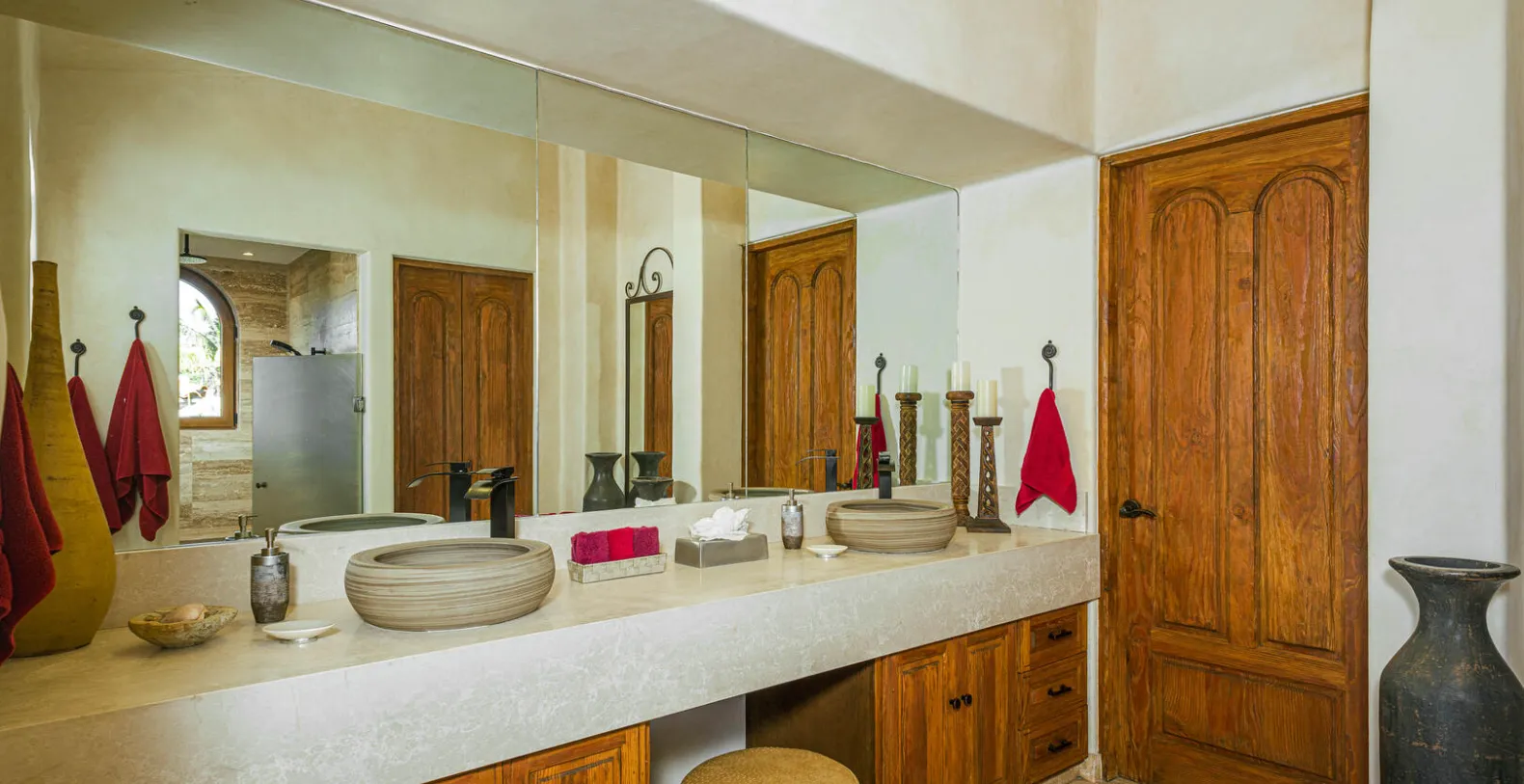 An idyllic blend of Spanish Colonial hacienda and Tuscan villa, Alegria features palatial columns, exquisite stonework, and beautiful wood accents throughout. The interior of the home is luminous, as sunlight floods in through the windows up to the vaulted ceilings, creating a warm and welcoming ambiance. With vibrant, plush pillows and soft linens, each of Casa Alegria's 5 Bedrooms will become your own private oasis. As well as including their own ensuite bathroom, the bedrooms all feature a stereo system and an in-room safe for your convenience. Two rooms feature a private terrace and panoramic views of the Sea of Cortez.