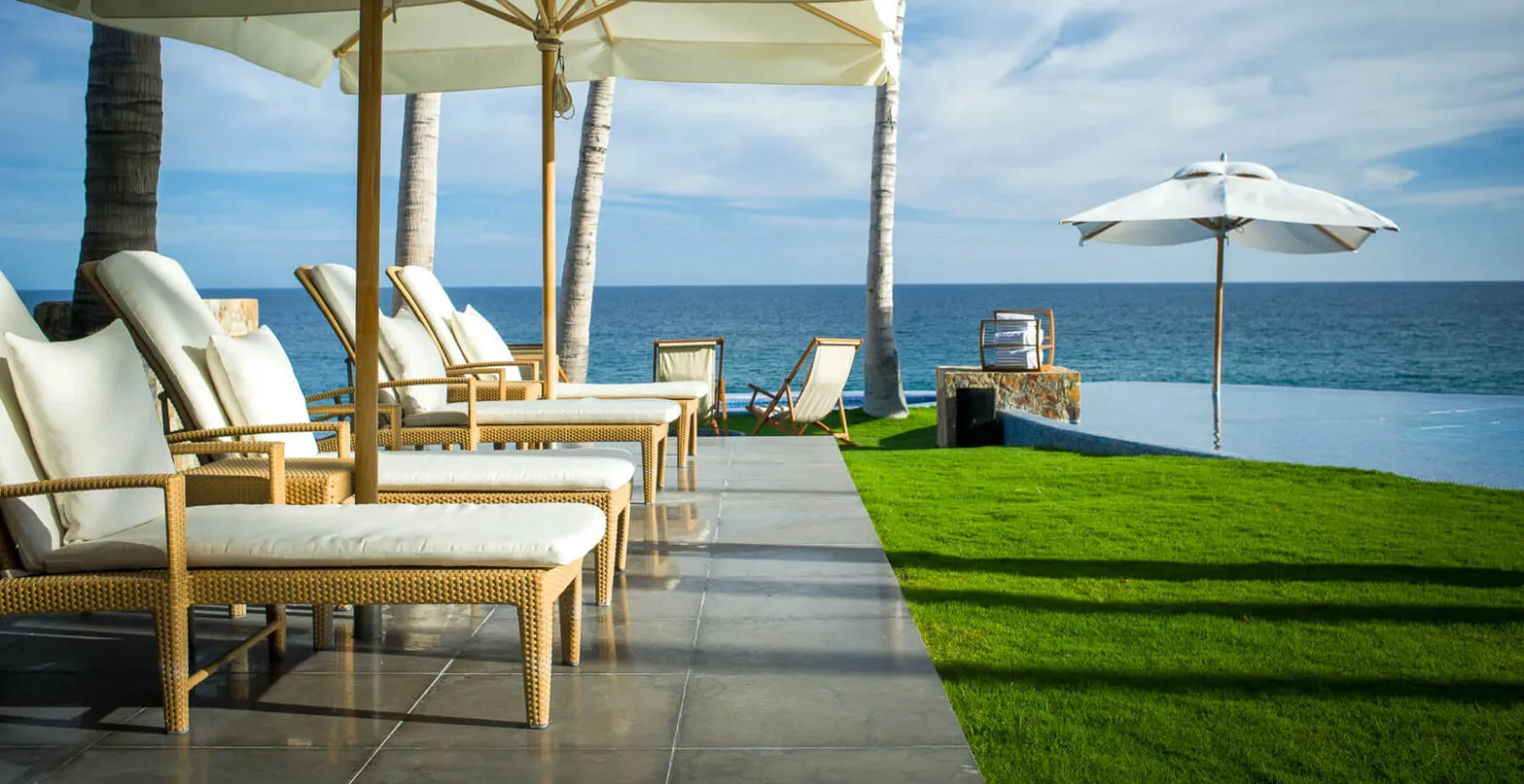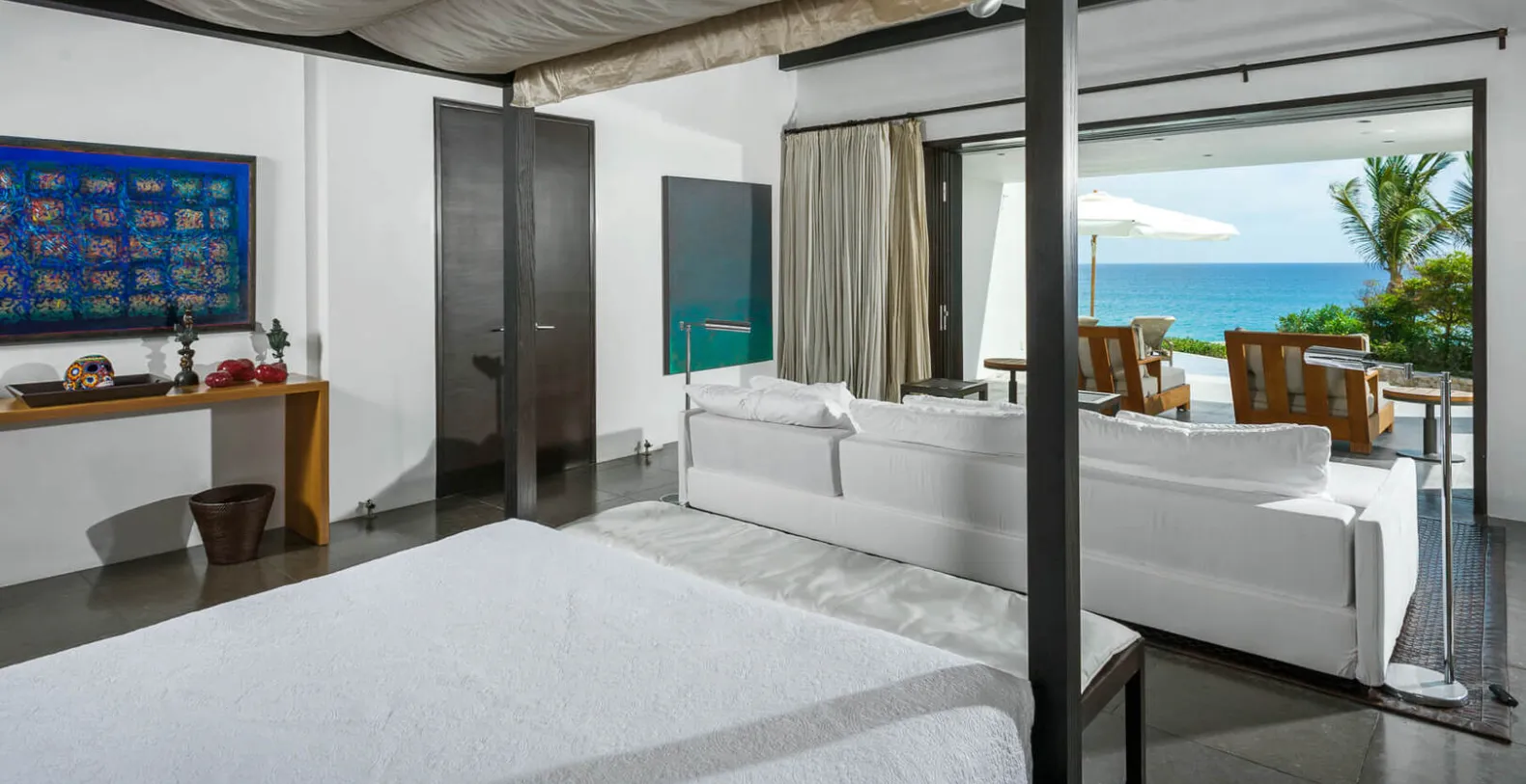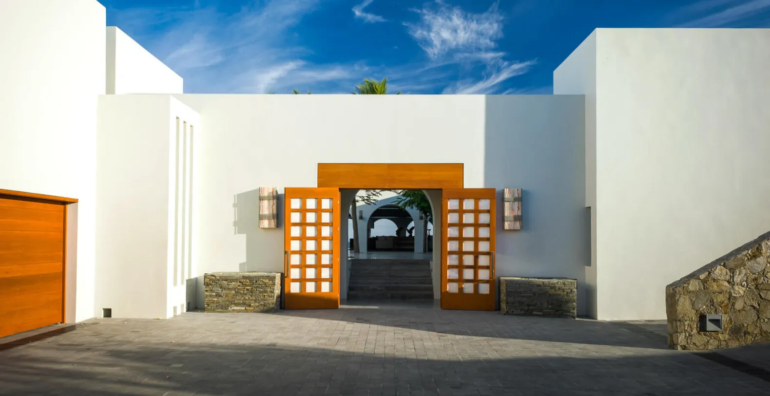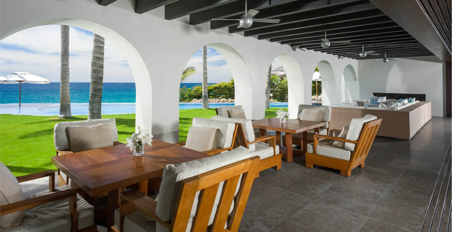 Interior appointments include Carrara marble, Venetian plaster, and rich tropical hardwood tempered by crisp white walls and only the finest contemporary decor. Inspired by the grandeur of Colonial-era haciendas, Oliver boasts sweeping grounds, soaring archways, vaulted wood-beamed ceilings, and a beautiful courtyard at the heart of the home. Indoors, Oliver's gourmet kitchen, plush living room, and impressive 14-seat dining area are united in an open-concept design to create a paradise for guests that love to entertain. The stunning artwork is found in every room at Oliver with a special 3-panel piece in the living area that mirrors the sand, sea, and sky pouring in through the massive recessed glass doors. Cool breezes flow off the Cortez and warm sunshine brightens, creating a comfortable and inviting ambiance throughout the home.