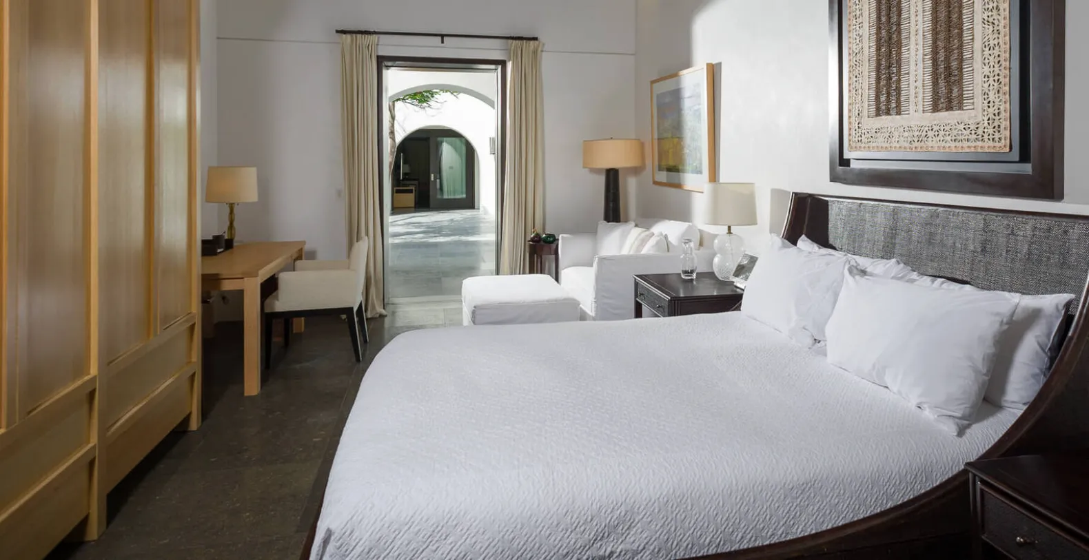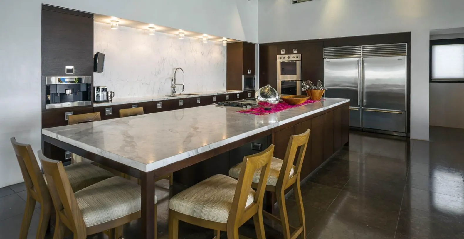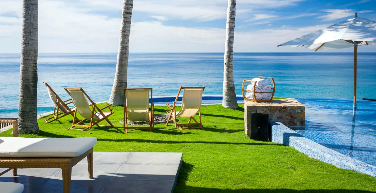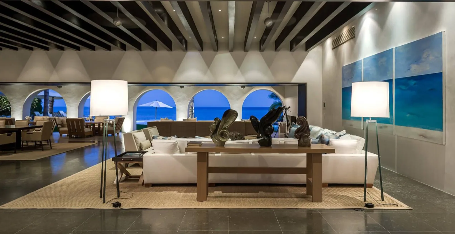 Interior appointments include Carrara marble, Venetian plaster, and rich tropical hardwood tempered by crisp white walls and only the finest contemporary decor. Inspired by the grandeur of Colonial-era haciendas, Oliver boasts sweeping grounds, soaring archways, vaulted wood-beamed ceilings, and a beautiful courtyard at the heart of the home. Indoors, Oliver's gourmet kitchen, plush living room, and impressive 14-seat dining area are united in an open-concept design to create a paradise for guests that love to entertain. The stunning artwork is found in every room at Oliver with a special 3-panel piece in the living area that mirrors the sand, sea, and sky pouring in through the massive recessed glass doors. Cool breezes flow off the Cortez and warm sunshine brightens, creating a comfortable and inviting ambiance throughout the home.