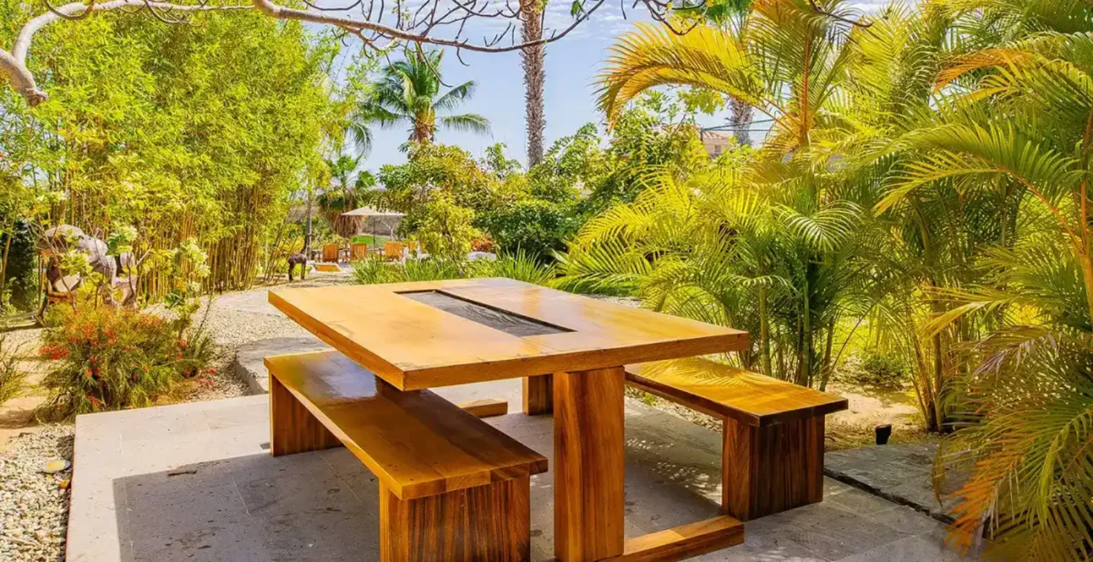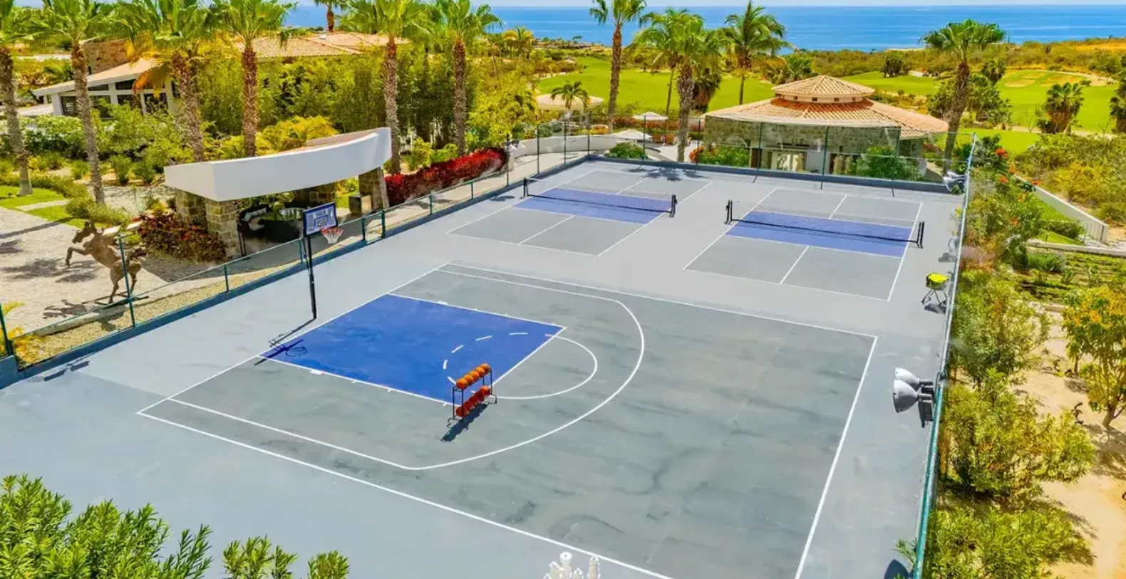 Outdoors, Casa Kokomo delivers a true resort-style experience. Spend the day between two private pickleball courts, the sparkling infinity-edge pool, or the bubbling jacuzzi. Lush gardens surround open-air lounging and dining areas, while the palapa invites long dinners under the stars. Multiple terraces, fire features, and cozy seating areas ensure every moment feels inspired by the rhythm of Los Cabos and Mexico.