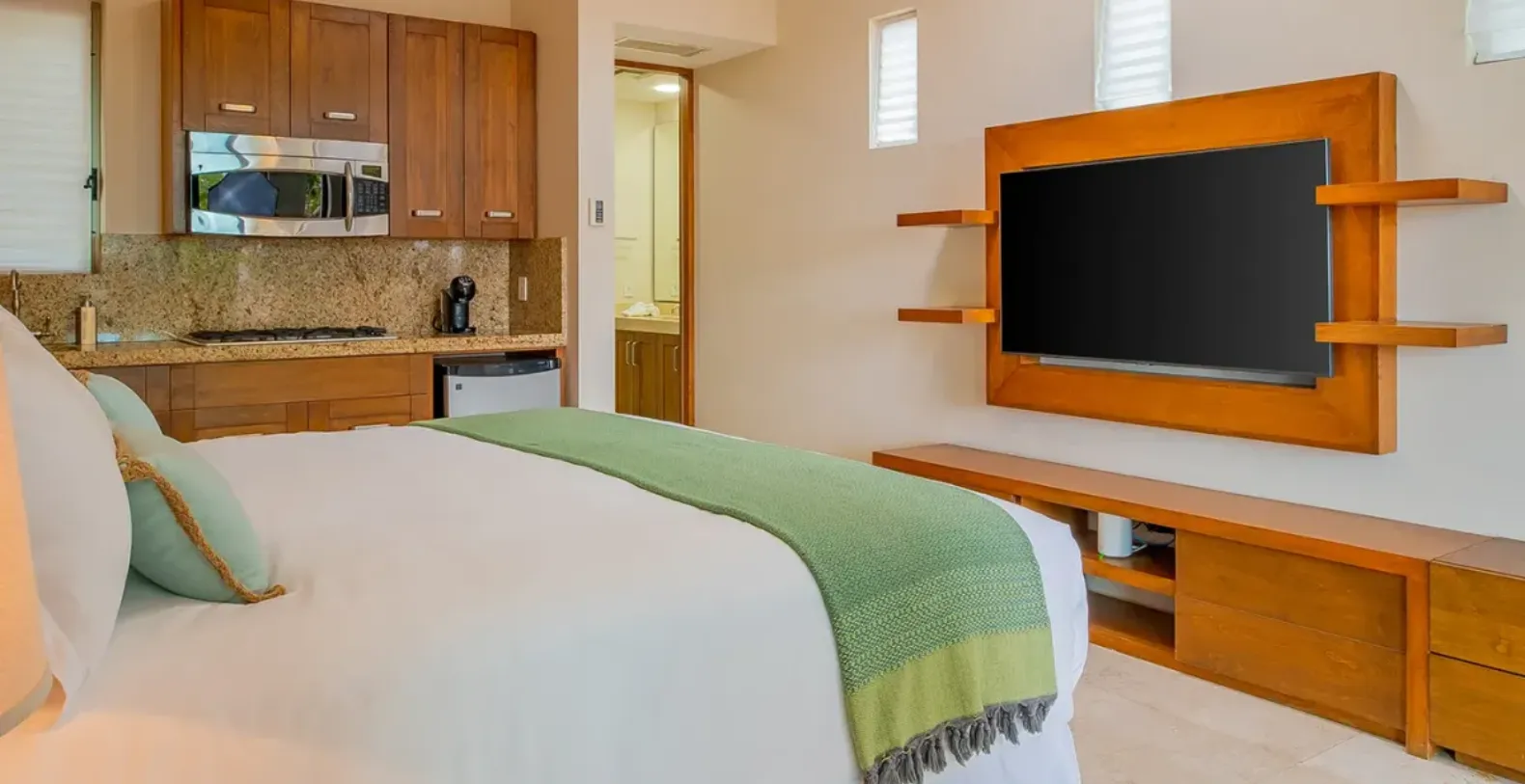 The estate’s layout provides privacy and flexibility for groups. The villa feature five bedrooms ready to accommodate up to 16 guests in, 4 bedrooms and an independent guest casita which includes a king bed, kitchenette, ensuite bathroom, and private patio with a fireplace—perfect for couples or visiting friends. Every suite feature air conditioning, Smart TV, Wi-Fi, and luxury amenity.