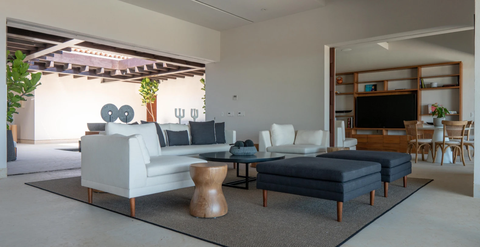 Stepping through the courtyard, you’re welcomed into light-filled living spaces that open effortlessly to the ocean horizon. The villa features four beautifully appointed bedrooms and four en-suite bathrooms, comfortably accommodating up to 10 guests. The master suite offers a king-size bed and tranquil vistas, while the remaining bedrooms are thoughtfully configured with queen and double beds , all designed with comfort, privacy, and style in mind. Perfect for children or friends traveling together. Every detail has been carefully curated to balance luxury with ease, from contemporary furnishings to serene décor that reflects the coastal beauty of Punta Mita.