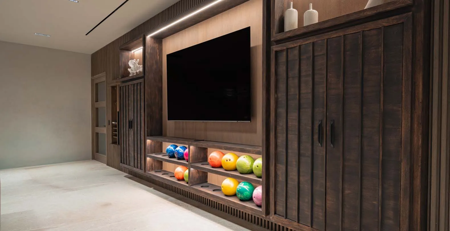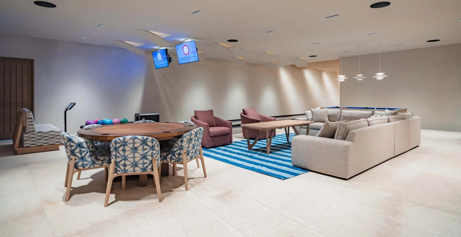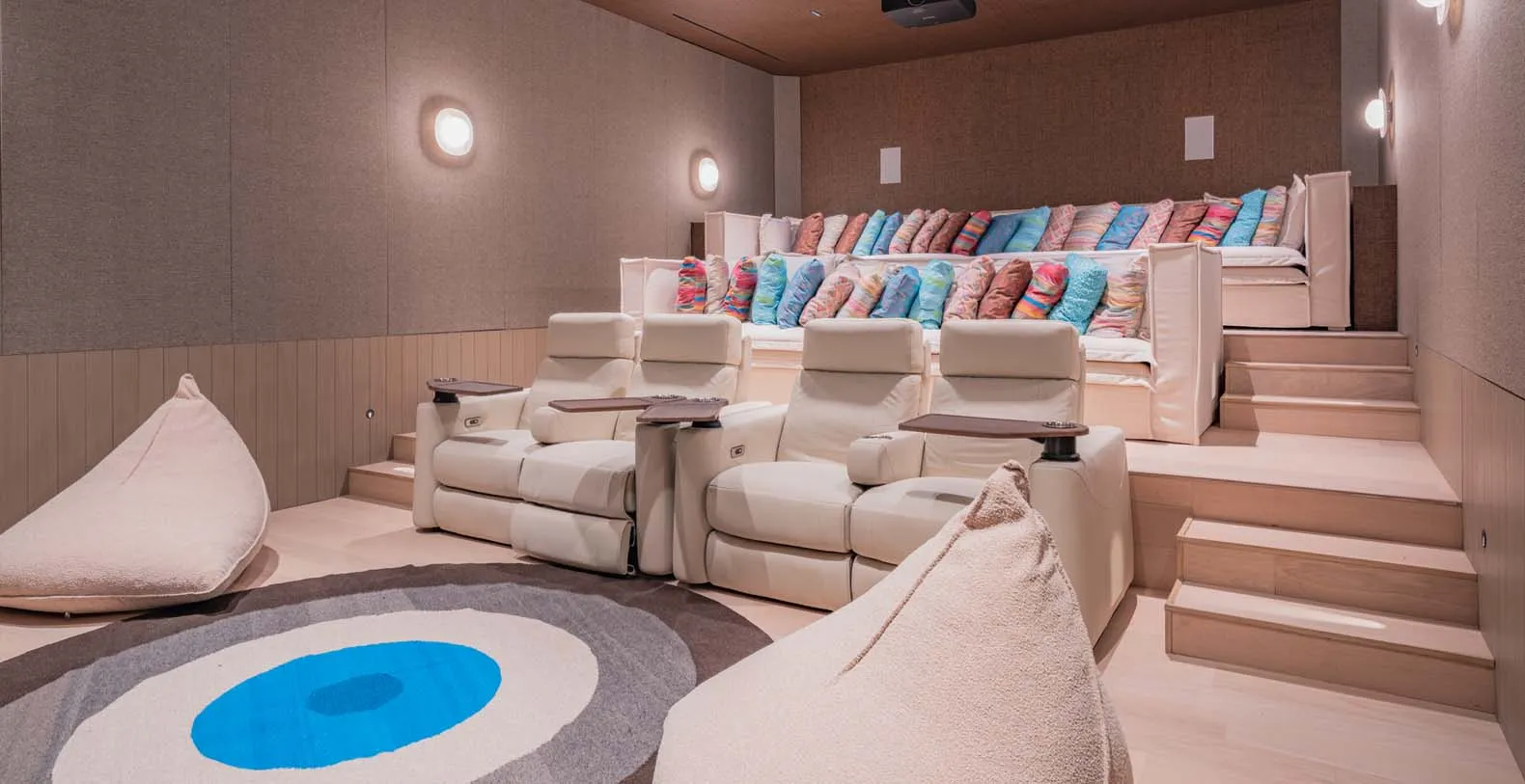 Casa de Elementos is a truly unique luxury vacation rental in Punta Mita, Mexico within the La Punta Estates Community. This brand new luxury rental is beyond extraordinary combining the truly "resort like experience" while combining the fun things family want within a home while traveling. Parents often ask us "what should we do with the kids in Punta Mita?" That is something that this house and it's owner have really thought about while building. Not only does this house have it's very own movie theater, there is a Casa de Elementos offers an entire floor dedicated to entertainment, ensuring endless fun for guests of all ages. This luxurious space features a pool table, a cozy lounge area, a card table for board games, and a fully stocked bar with a TV and two wine cellars. Enjoy friendly competition at the private two-lane bowling alley. Walk down the hallway to discover the state-of-the-art home theater, complete with plush seating, tiered levels for optimal viewing, and a front row of cushioned mats for ultimate comfort. This entertainment hub guarantees unforgettable moments in a stylish and relaxing environment.