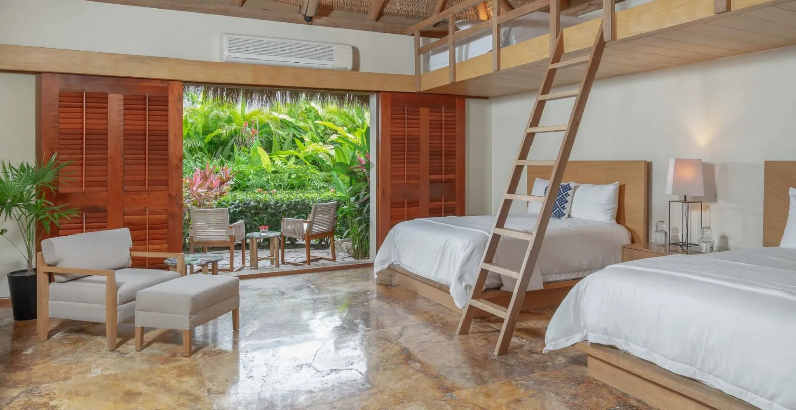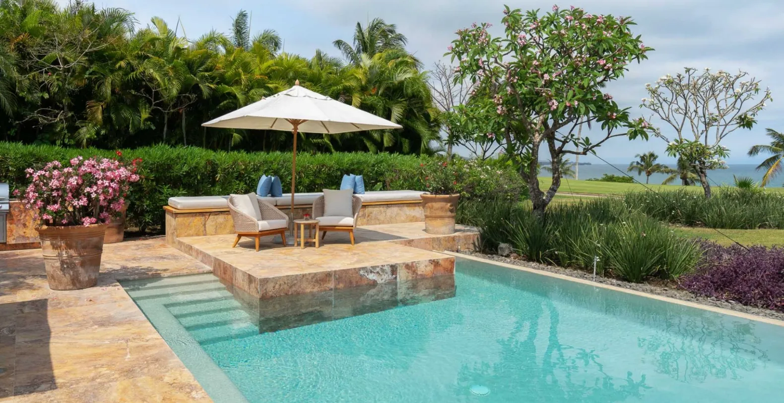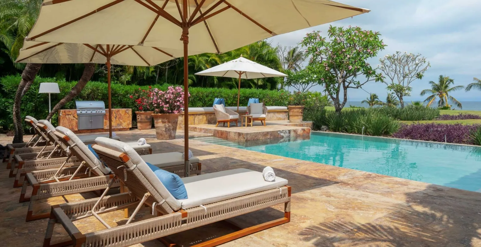 El Jardín offers four bedrooms and accommodates up to 10 guests. Each of the four bedrooms has been thoughtfully designed as a private sanctuary. All rooms include ensuite bathrooms, outdoor seating areas, and lush tropical or ocean views. The primary suite opens directly onto the garden terrace, where morning breezes and ocean sounds create the perfect start to the day.