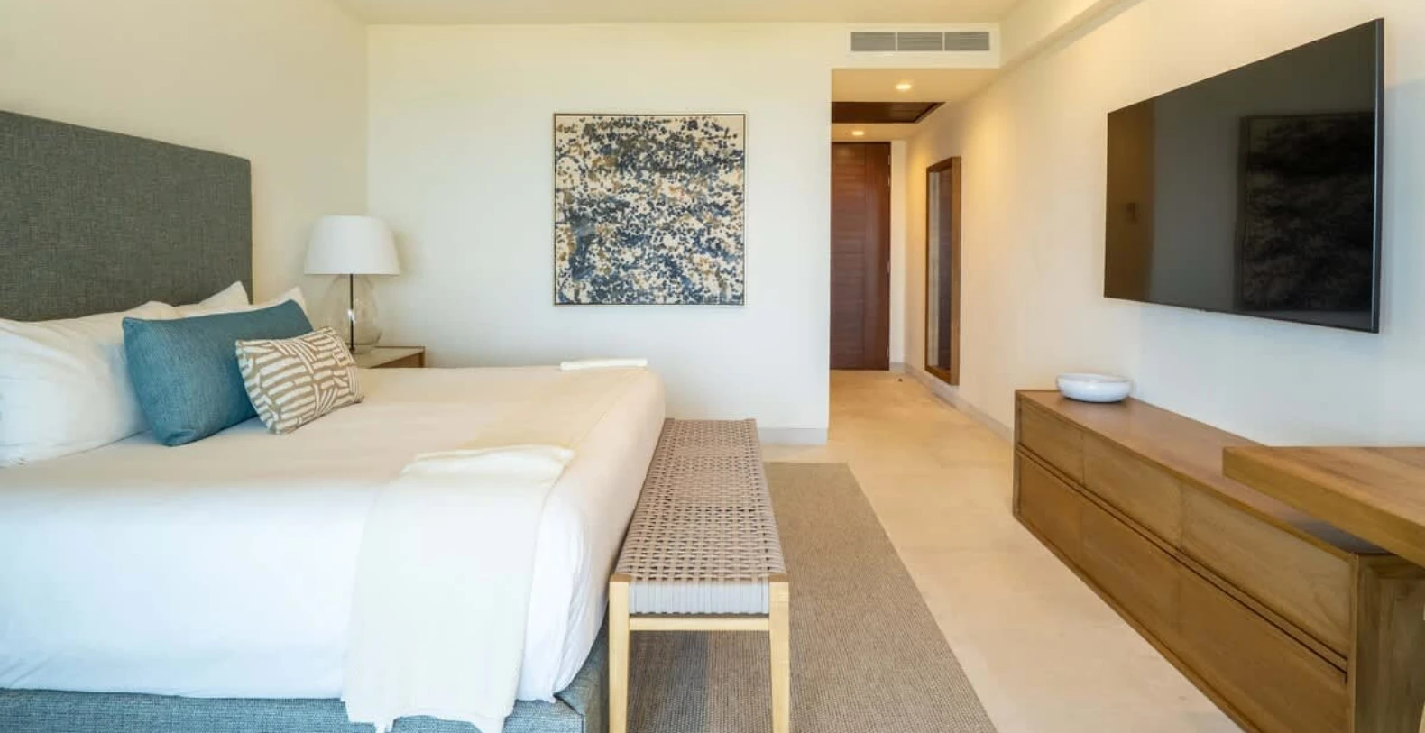 Indulge in refined coastal elegance at Encanto 1021, a sophisticated ocean-view vacation condo in Punta Mita’s exclusive El Encanto community. The condo combines sleek design, breathtaking vistas, and resort privileges. Encanto 1021 is perfect for families or small groups, offering versatile sleeping arrangements and convenient access to the resort’s world-class amenities.