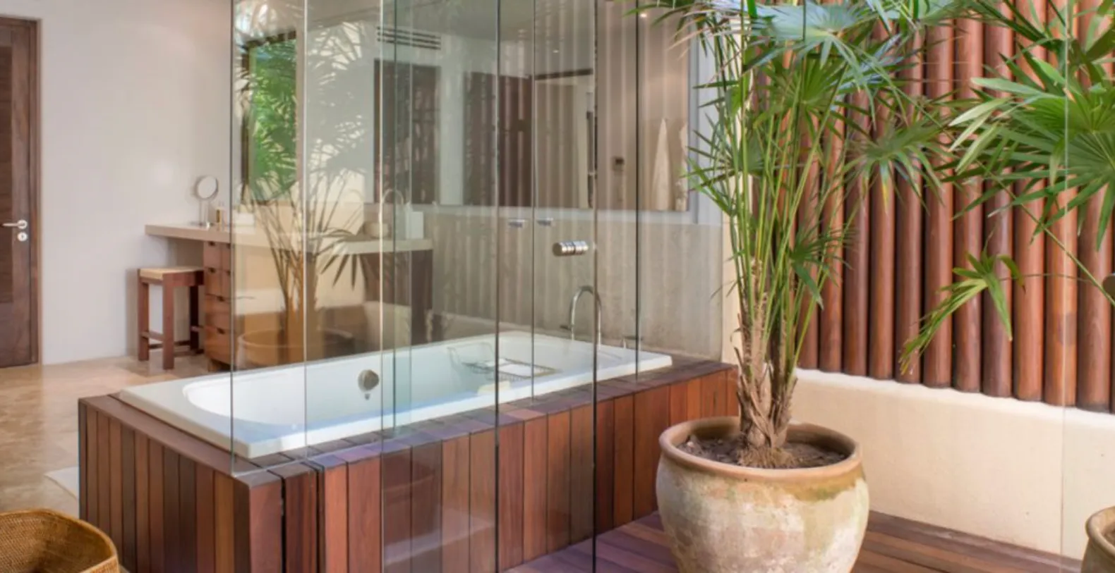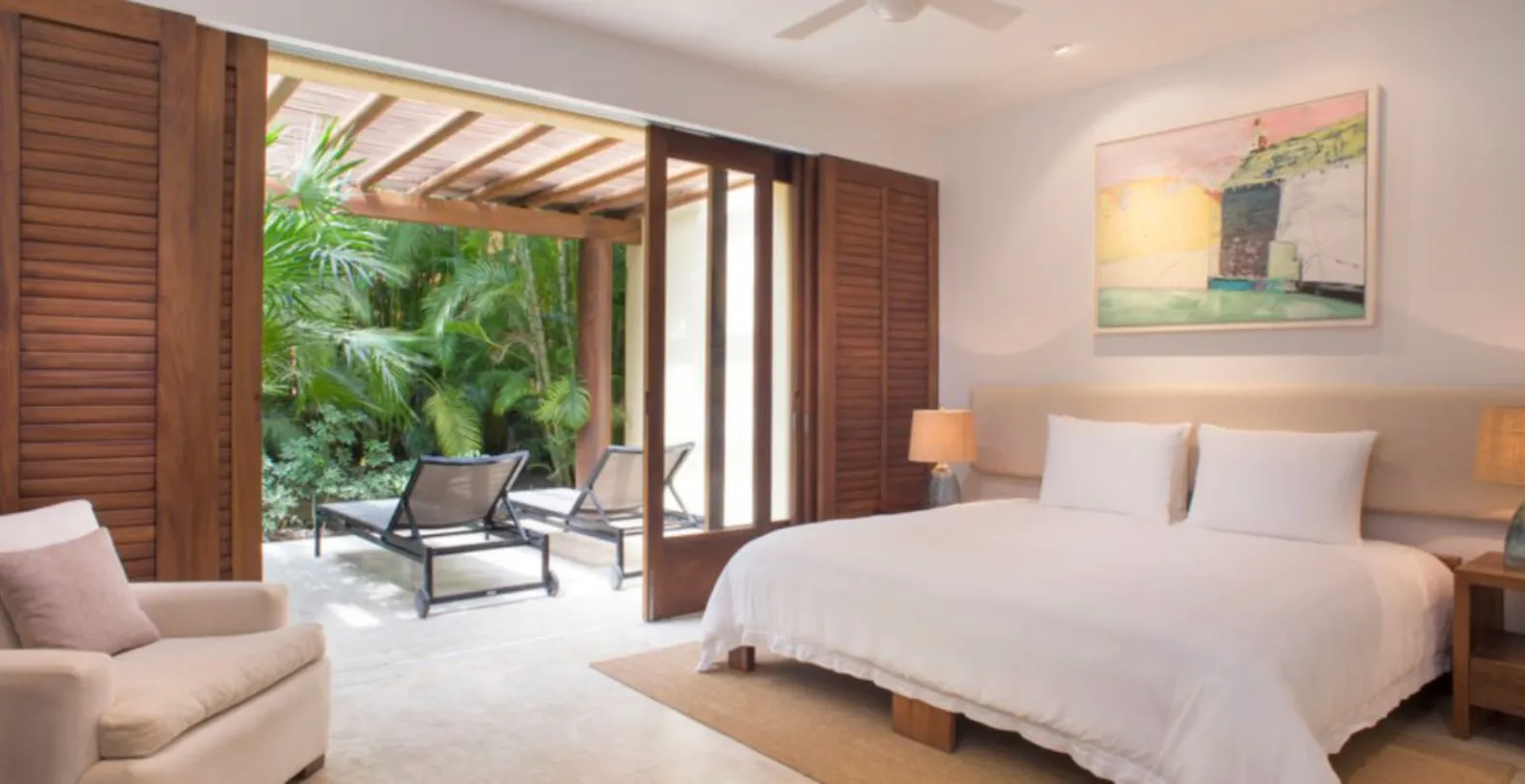 Indoors, the villa boasts spacious living areas that open seamlessly to the terraces, allowing natural light and soft sea breezes to flow throughout. The modern gourmet kitchen is fully equipped for the estate’s professional chef, who prepares exceptional meals every day. Estate Jaguar features six beautiful bedrooms and seven bathrooms, accommodating up to twelve guests in exceptional comfort. Each suite is designed as a private haven, offering plush bedding, serene garden or ocean views, and luxurious ensuite bathrooms. Select rooms enjoy direct terrace access, allowing guests to step into nature from the moment they wake.