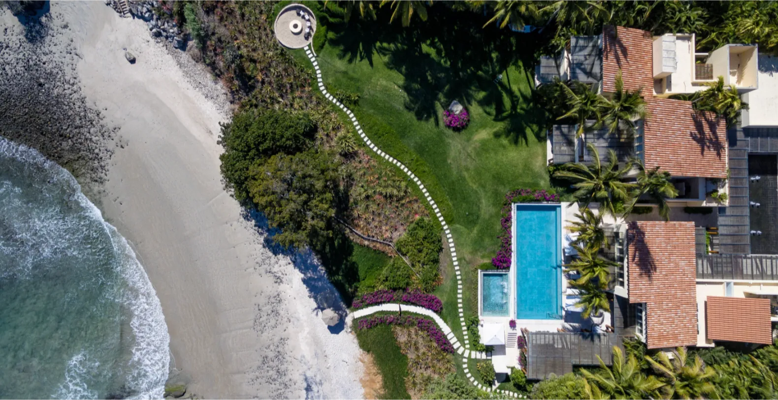 Estate Jaguar is a magnificent beachfront vacation villa; a sanctuary tucked within the ultra-exclusive Ranchos Estates of Punta Mita. Designed as a collection of beautifully crafted sub-structures connected through landscaped paths and shaded terraces, this luxurious estate balances togetherness with personal space.